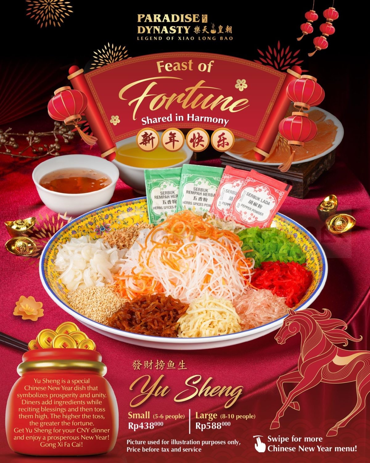 Paradise Dynasty Chinese New Year Feast of Fortune 2026 tersedia mulai 1 Februari 2026 di Jakarta dan Tangerang, menghadirkan menu spesial Imlek untuk dinikmati bersama keluarga.