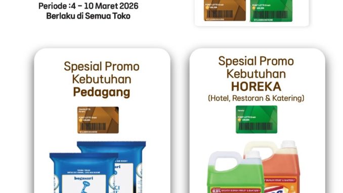 LOTTE Grosir Promo LOTTE Grosir Flash Sale 02-04 Februari 2026 February 3, 2026 Promo LOTTE Grosir Flash Sale berlangsung 2 – 4 Februari 2026 pukul 17.00 – 20.00 WIB di seluruh store dengan harga spesial produk kebutuhan favorit.