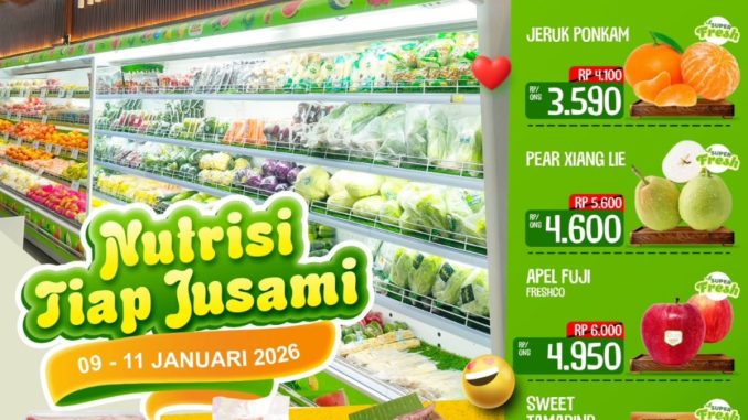 Promo Super TOP JUSAMI Weekend periode 30 Januari – 01 Februari 2026! Belanja buah, sayur, dan daging segar di Fresh Area dan kumpulkan poin member setiap Rp50.000.
