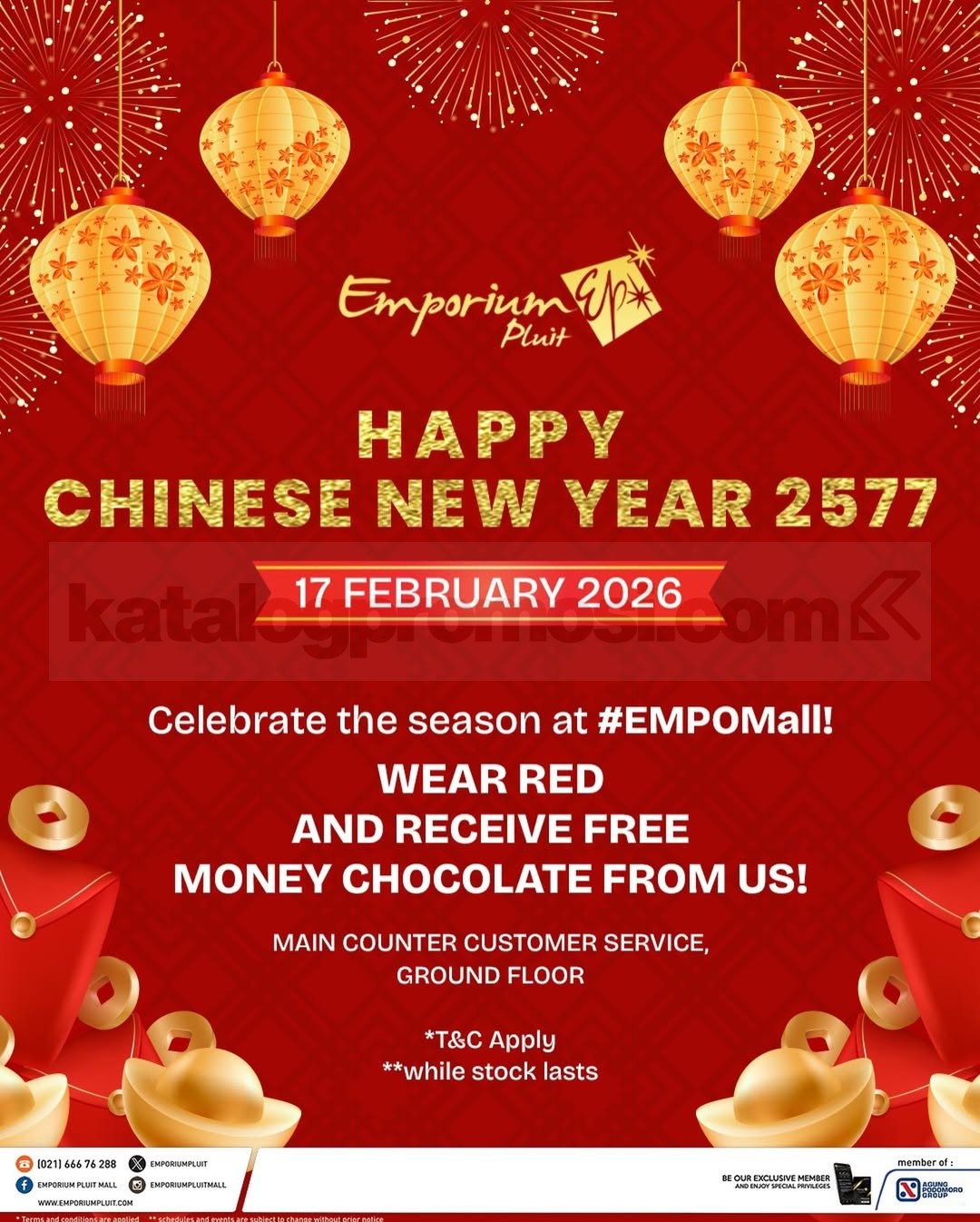 Perayaan Imlek di Emporium Pluit Mall dengan Free Money Chocolate untuk pengunjung OOTD merah, berlaku mulai 17 Februari 2026 di Main Counter Customer Service.