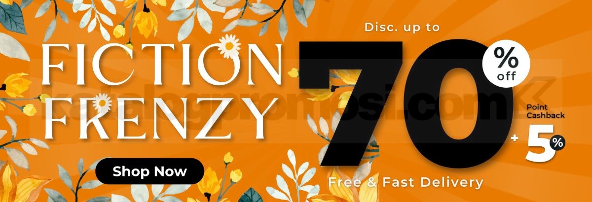 Lagi cari buku fiksi seru? Cek promo Periplus Fiction Frenzy ini! Diskon gede sampai 70% untuk buku fiksi incaranmu, plus cashback poin 5% yang bisa kamu pakai buat belanja buku lagi. Gak cuma itu, pengirimannya juga gratis dan super cepet! Jadi, kamu gak perlu nunggu lama buat nikmatin buku baru.