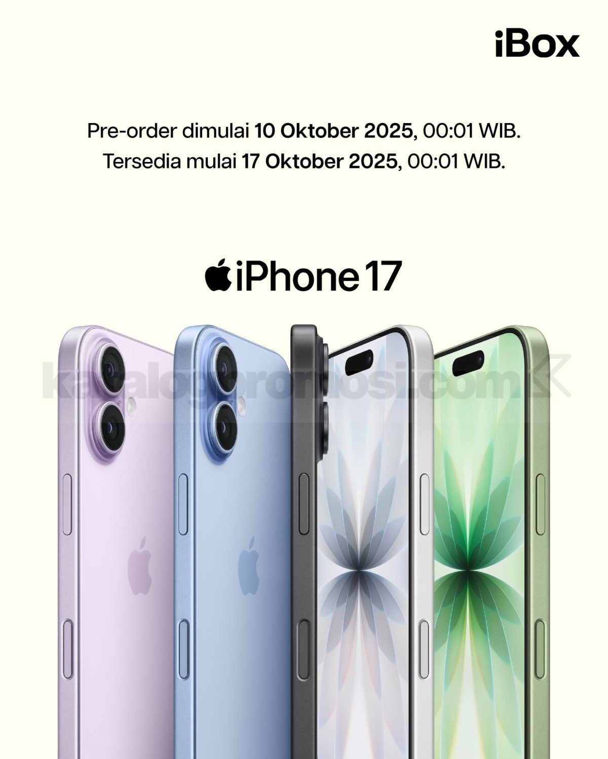 Pre-order iPhone 17, iPhone Air, dan iPhone 17 Pro di iBox mulai 10 Oktober 2025 pukul 00.01 WIB dan tersedia resmi mulai 17 Oktober 2025 di seluruh outlet iBox Indonesia.