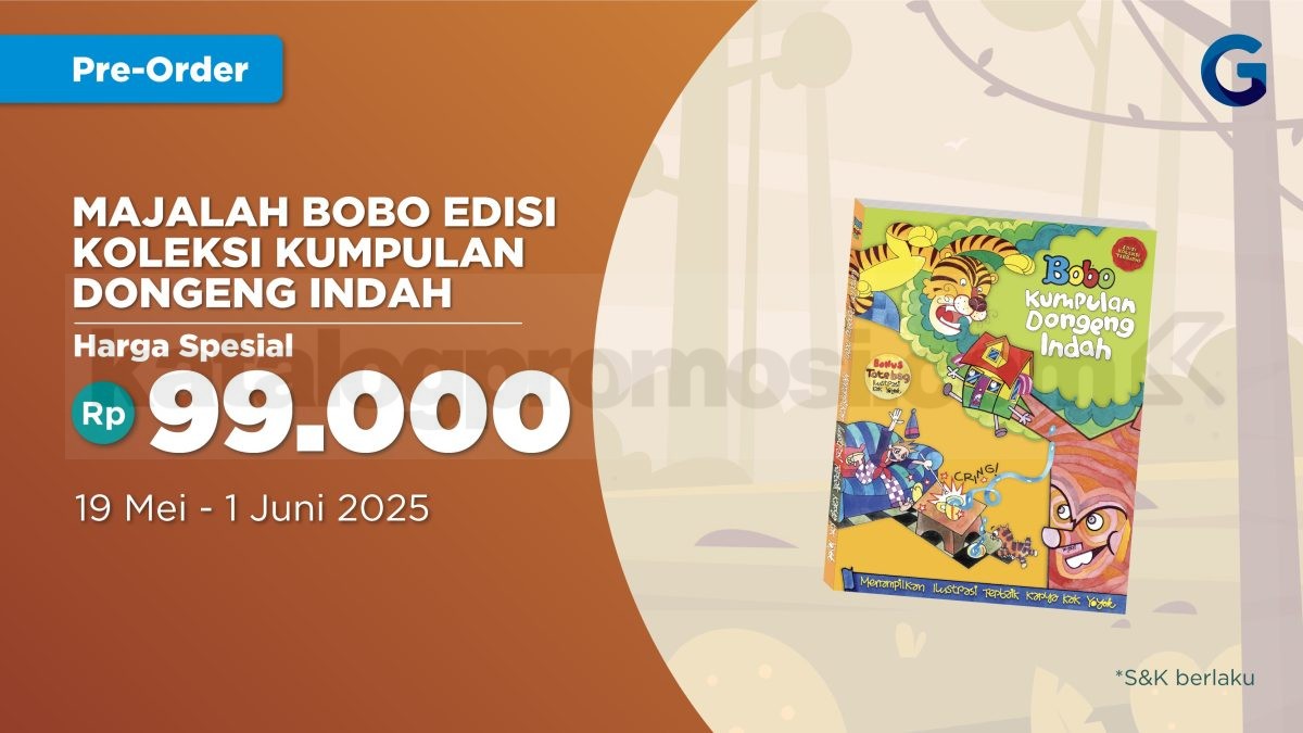 - Harga spesial Rp99 ribu setiap pembelian Majalah Bobo Edisi Koleksi Kumpulan Dongeng Indah.