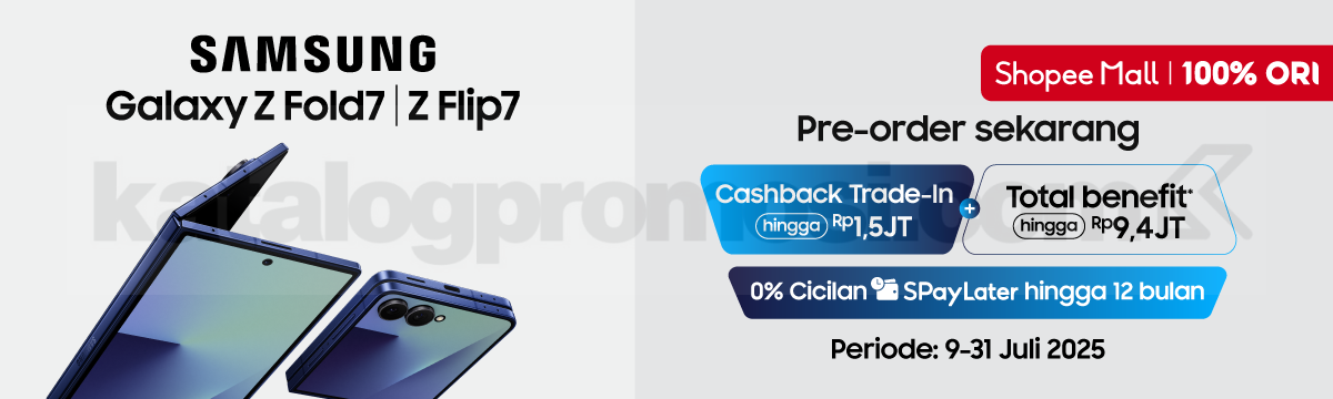 - Cashback trade-in maksimal Rp1,5 juta berlaku setelah verifikasi perangkat lama sesuai ketentuan trade-in Samsung.
