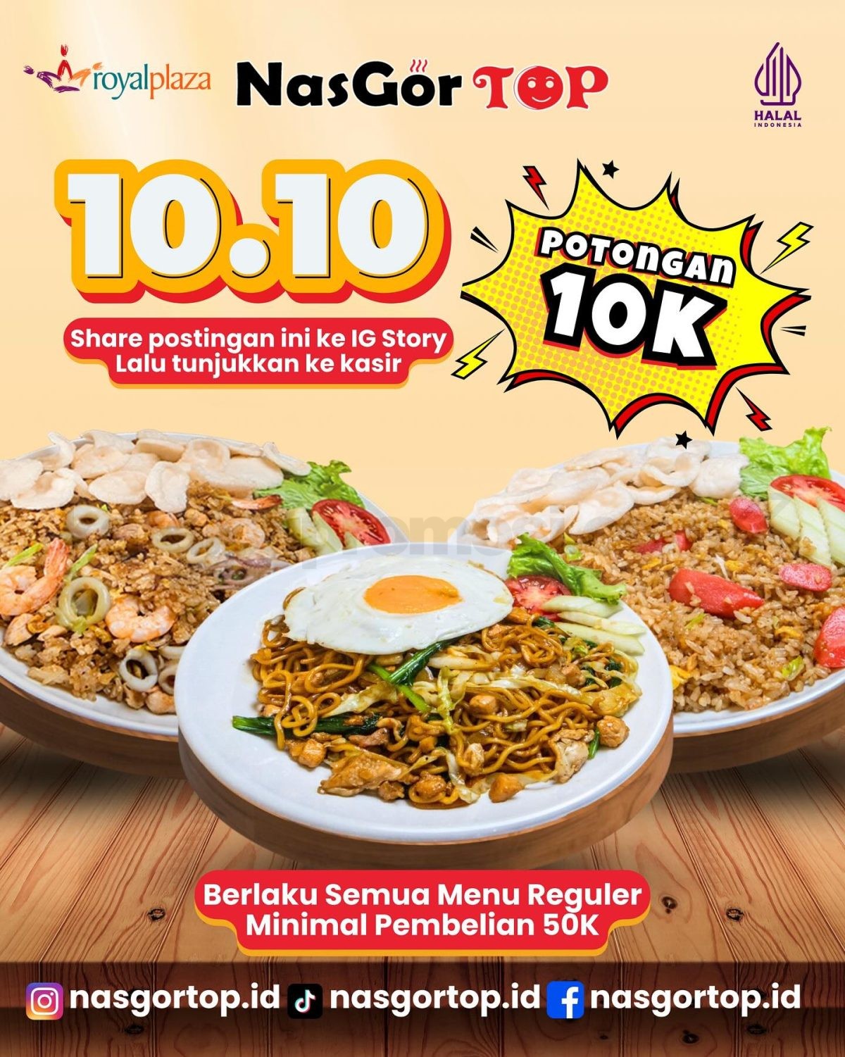 Promo 10.10 Nasgor Top Diskon Rp 10.000 Untuk Menu Reguler, khusus tanggal 10 Oktober 2025