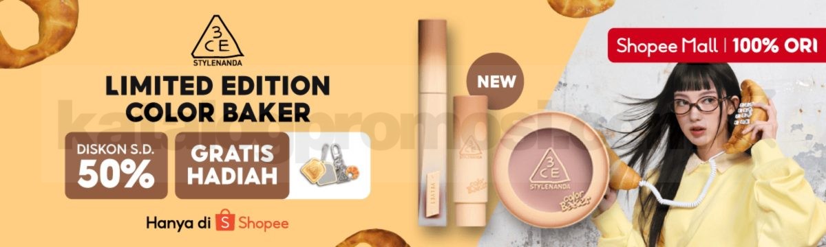 Dengan diskon hingga 50% dan bonus hadiah lucu, promo koleksi Color Baker dari 3CE Stylenanda ini sayang untuk dilewatkan. Buat kamu yang sedang mencari makeup dengan nuansa hangat dan natural, sekarang waktu yang pas untuk berburu produk favorit di Shopee Mall sebelum stoknya habis.