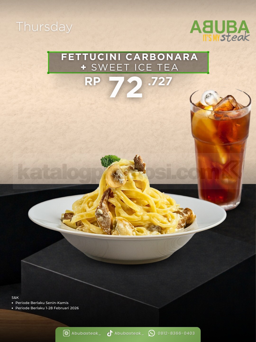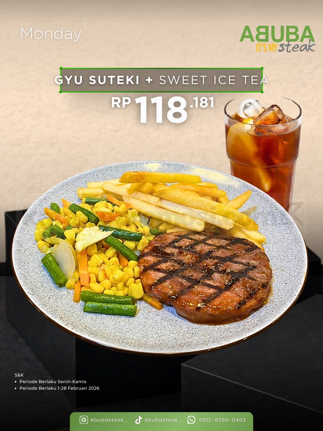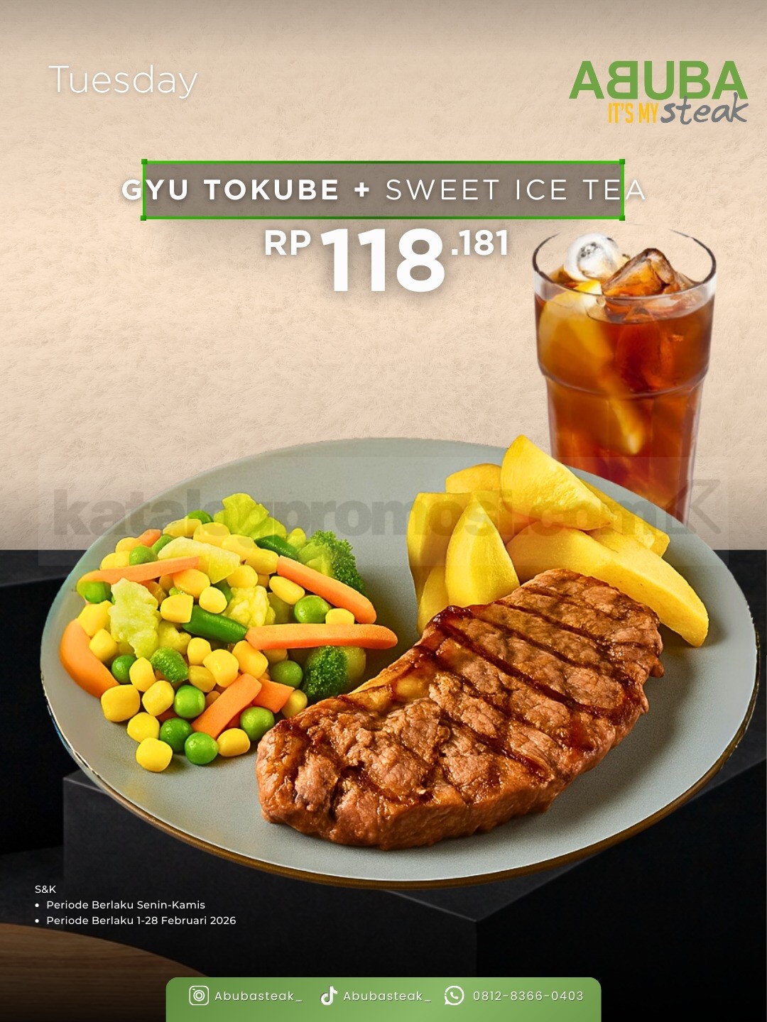 Berlaku di seluruh outlet ABUBA Itβs My Steak.