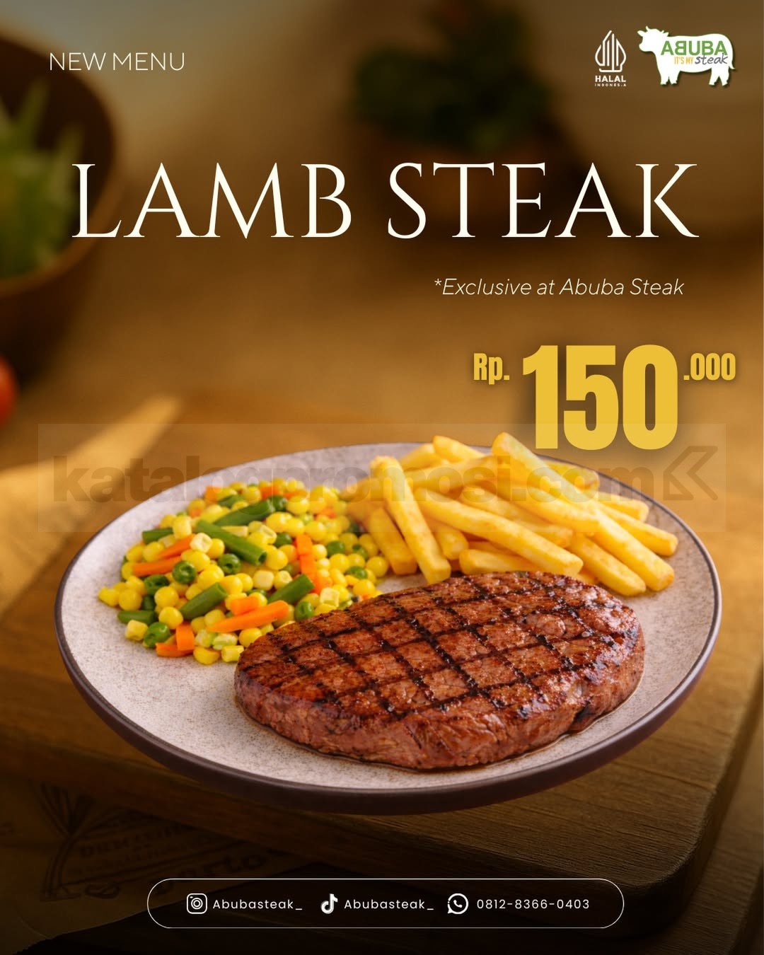 👉 Cek gambar promo Abuba Steak NEW! Lamb Steak Rp. 150.000 di bawah ini untuk lihat tampilan steak spesial yang lagi jadi incaran para meat lovers.