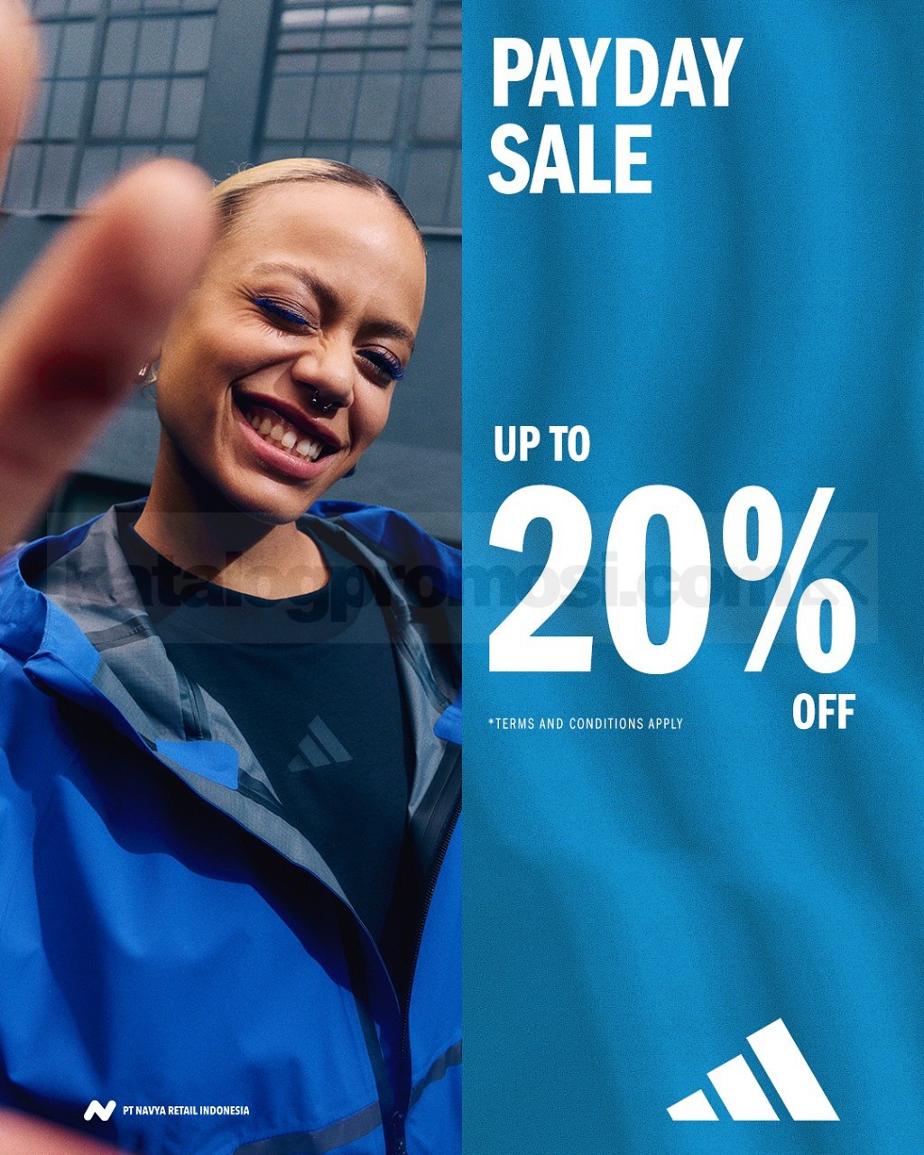 Promo Adidas Payday Sale Diskon hingga 20% untuk sepatu, apparel, dan performance gear berlaku 26–30 September 2025 di seluruh store Navya Retail Indonesia.