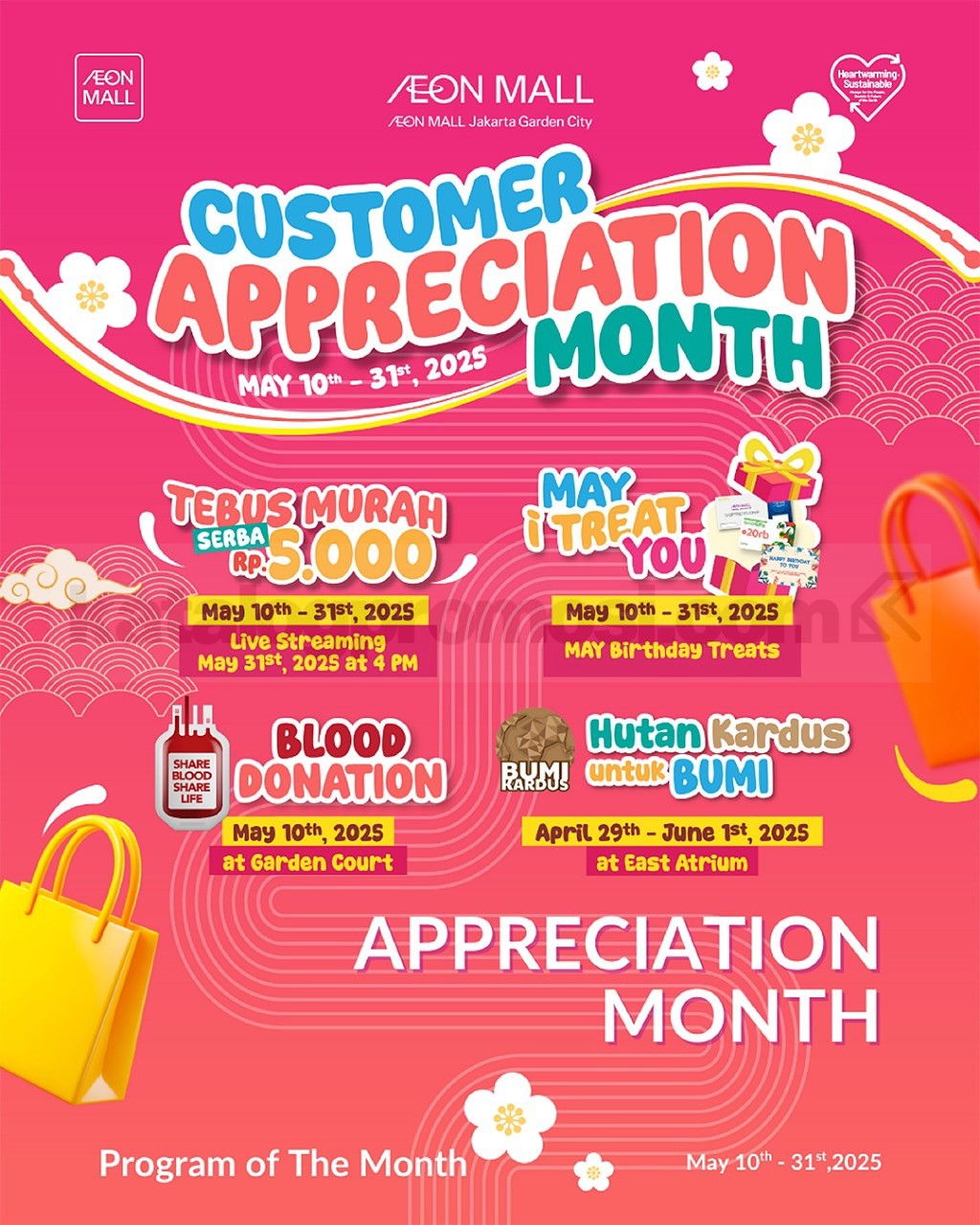 Promo AEON MALL JGC Customer Appreciation Month: Tebus Murah Rp5.000, Voucher Ulang Tahun, dan banyak aktivitas seru lainnya sampai 31 Mei 2025!