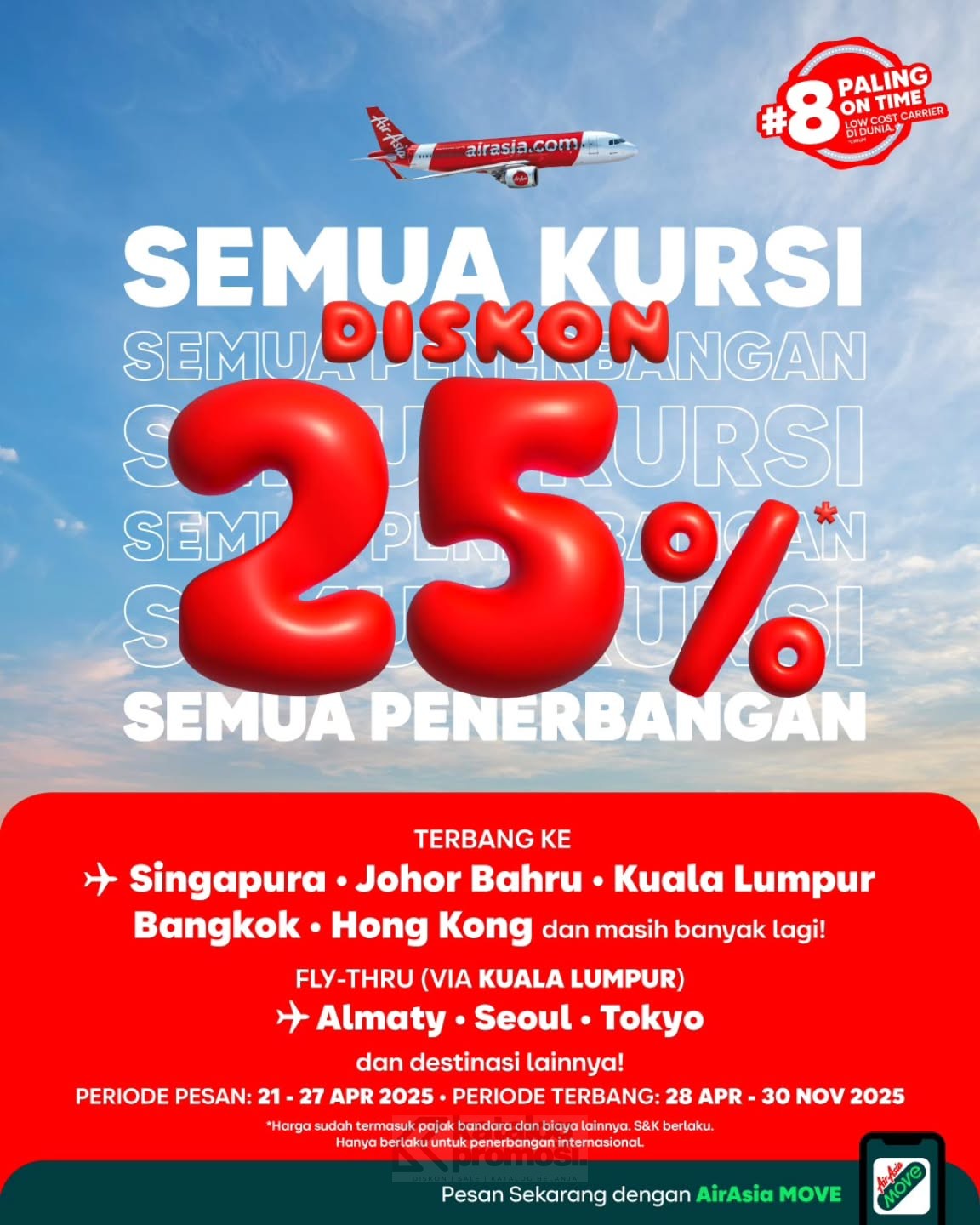 - Promo berlaku untuk semua kursi dan semua penerbangan langsung AirAsia.
