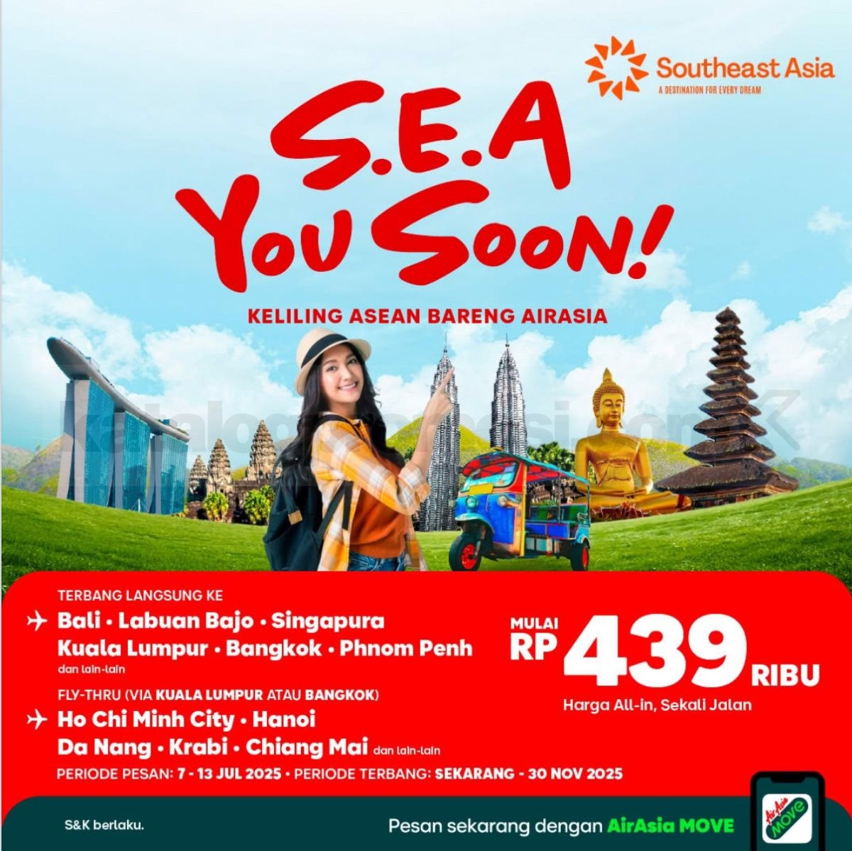 Promo ini berlaku untuk pemesanan sekarang hingga 07 September 2025, dan periode terbang bisa langsung dipilih sampai 30 November 2025. Cukup pesan tiketnya lewat aplikasi AirAsia MOVE, perjalanan ke Singapura makin mudah dan hemat.