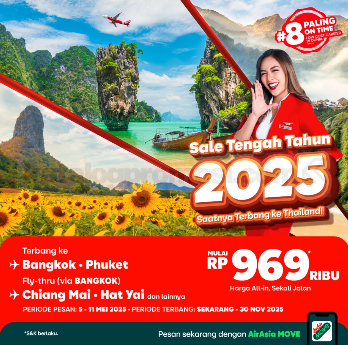 Periode perjalanan promo berlaku 11 September – 2 November 2025, dengan ketersediaan terbatas. Buruan manfaatkan SNAP AirAsia MOVE untuk rencana liburan hematmu!