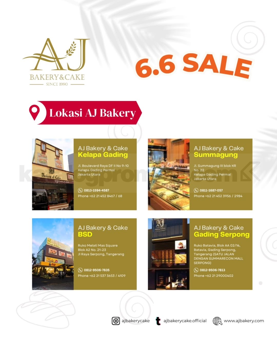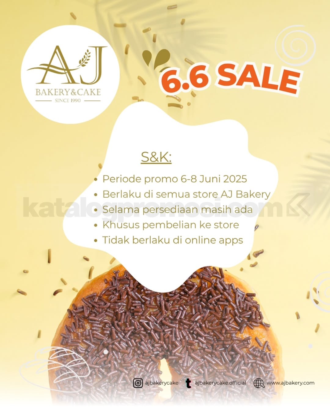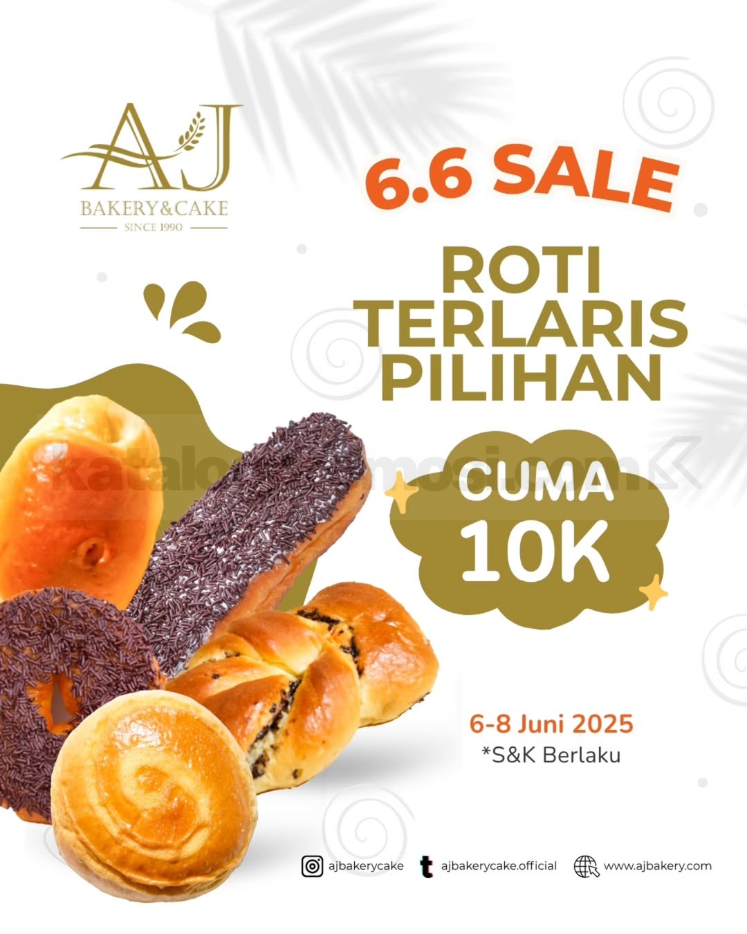 Promo AJ Bakery 6.6 SALE cuma 3 hari! Dapatkan roti-roti terlaris hanya Rp10.000 tanpa minimum pembelian, khusus di semua store 6–8 Juni 2025!