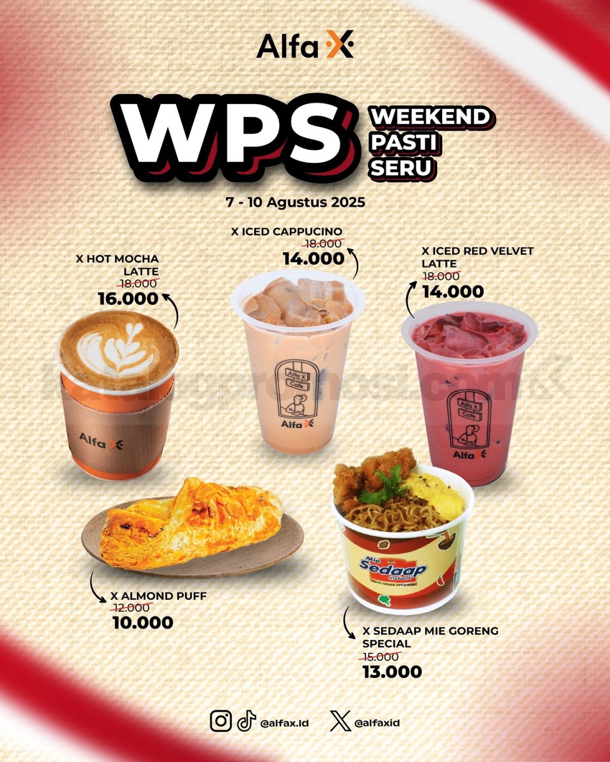 Promo Alfa X WPS Weekend Pasti Seru menu favorit mulai 11 ribu nikmati minuman & snack hemat, berlaku 02-05 Oktober 2025 di seluruh outlet Alfa X.