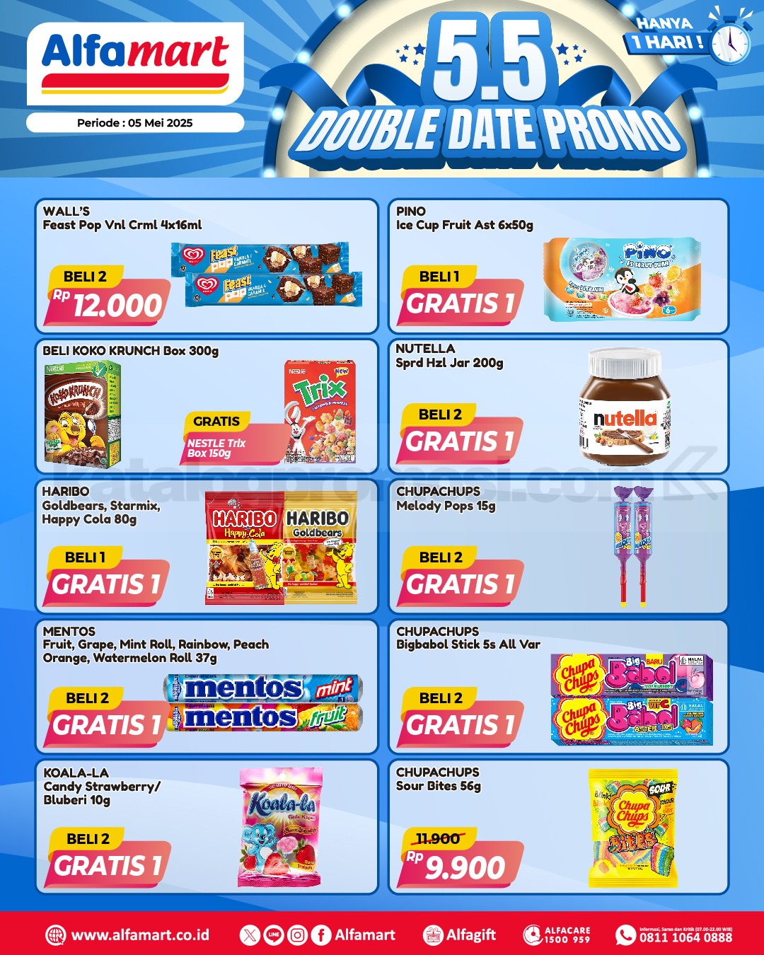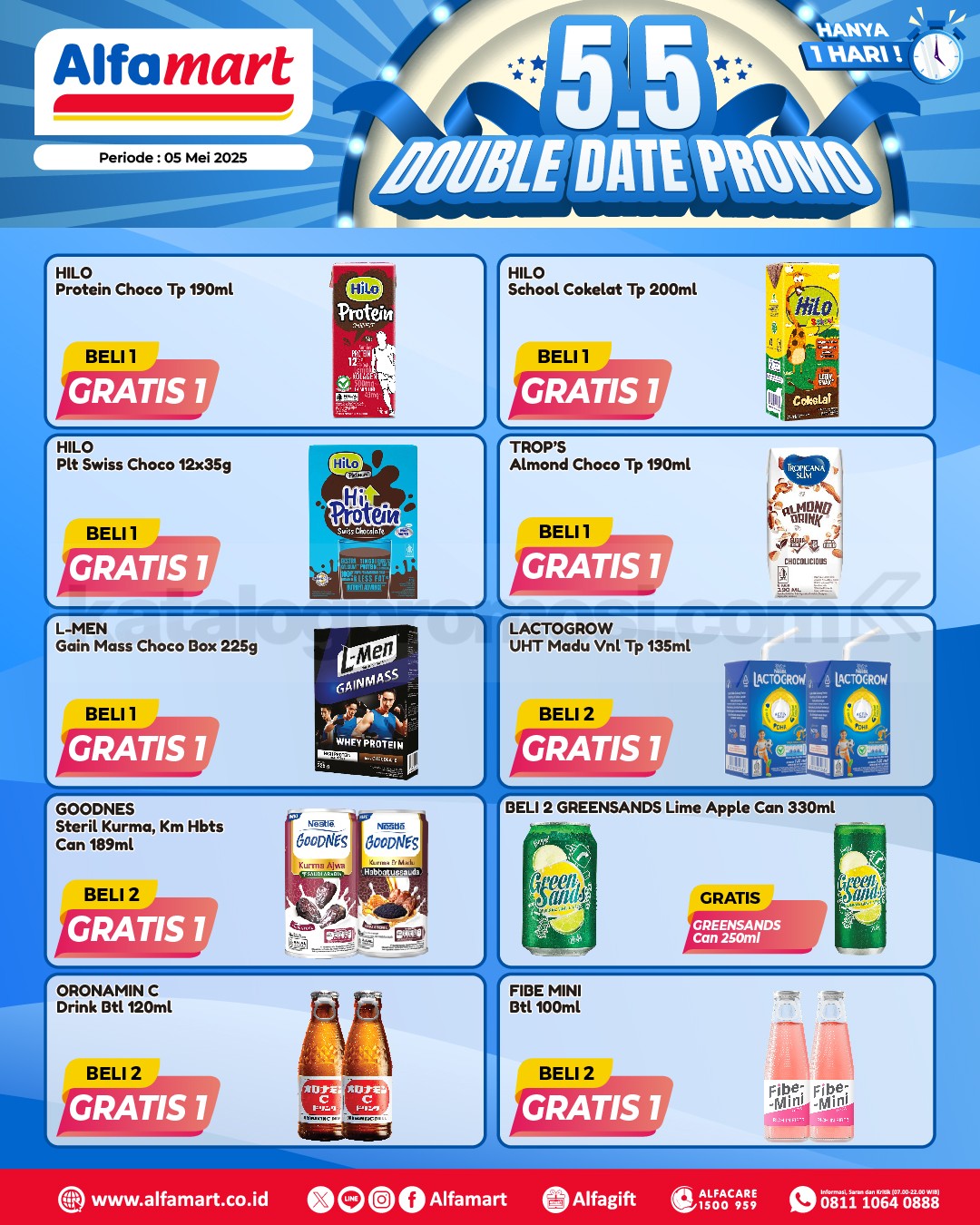 Sahabat hemat, siap-siap karena cuma 1 hari aja, kamu bisa nikmatin promo Beli 1 Gratis 1 & Beli 2 Gratis 1 buat beragam produk favorit mulai dari snack, minuman, perawatan diri, hingga makanan hewan! ๐๐