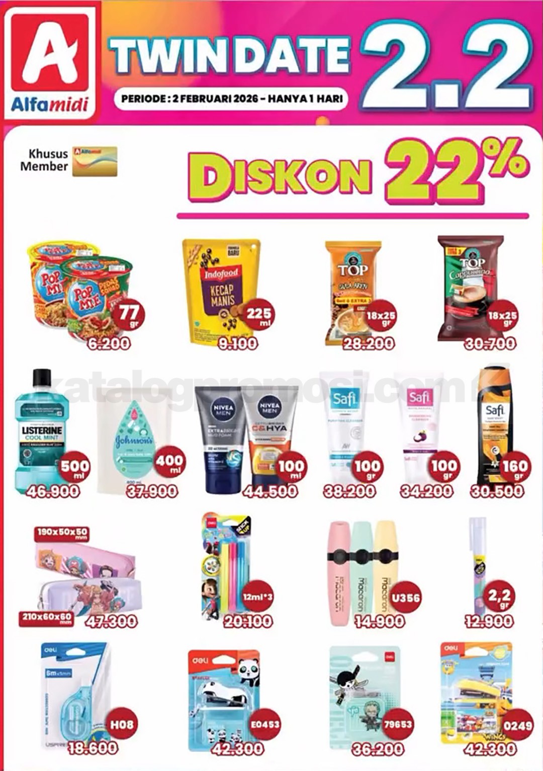 Tanggal kembar cuma datang sekali setahun. Datang ke Alfamidi di tanggalnya, pilih kebutuhan, dan nikmati semua keuntungan promo 2.2 sebelum waktunya lewat.