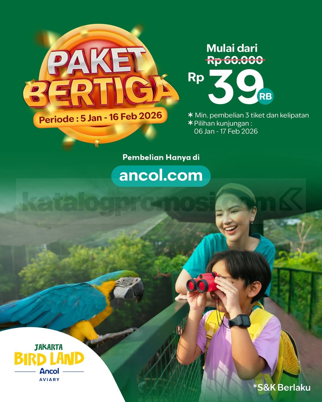 β’ Paket Bertiga Jakarta Bird Land mulai dari Rp. 39.000/orang