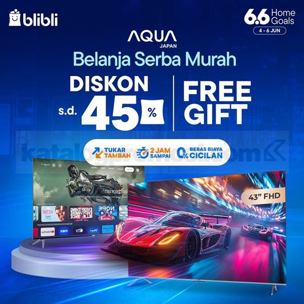 Promo kece buat kamu yang lagi incar barang elektronik rumah tangga! Di Blibli 6.6 Home Goals, ada promo Aqua Elektronik dengan diskon sampai 45%, plus hadiah gratis buat produk pilihan. 🤩
