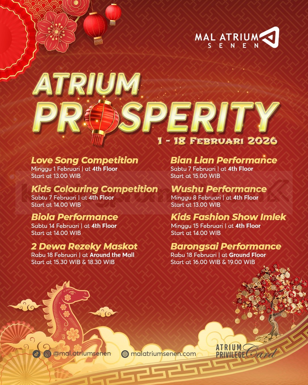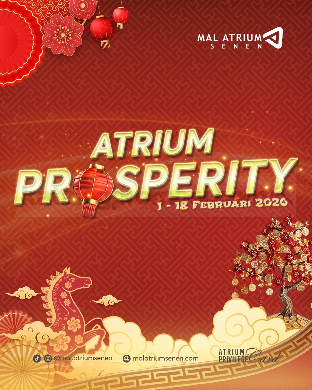 Nikmati pengalaman belanja dan hiburan sekaligus, rasakan kemeriahan Imlek, dan manfaatkan promo Atrium Prosperity 2026 secara maksimal!