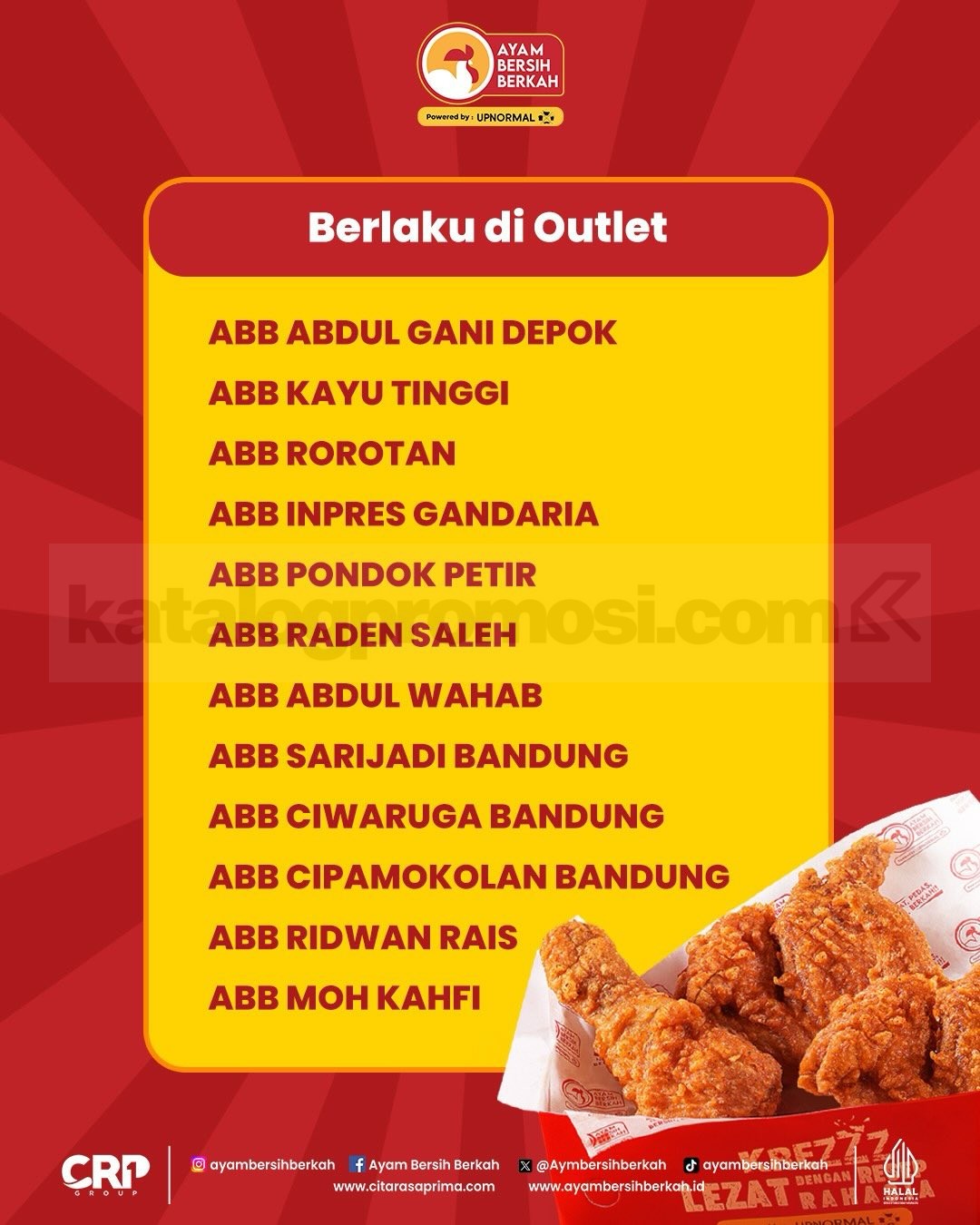 Promo berlaku di outlet Ayam Bersih Berkah yang berpartisipasi.