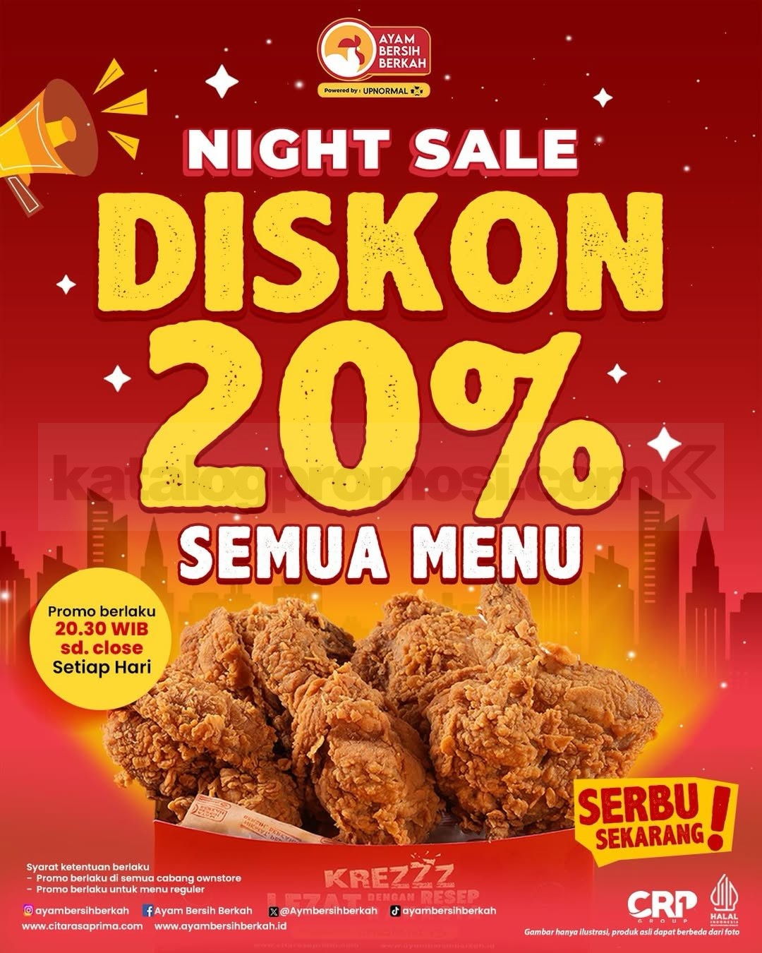 Nikmati Promo Ayam Bersih Berkah Night Sale Diskon 20% ini sebagai pilihan hemat buat makan malam atau ngemil santai bareng teman!