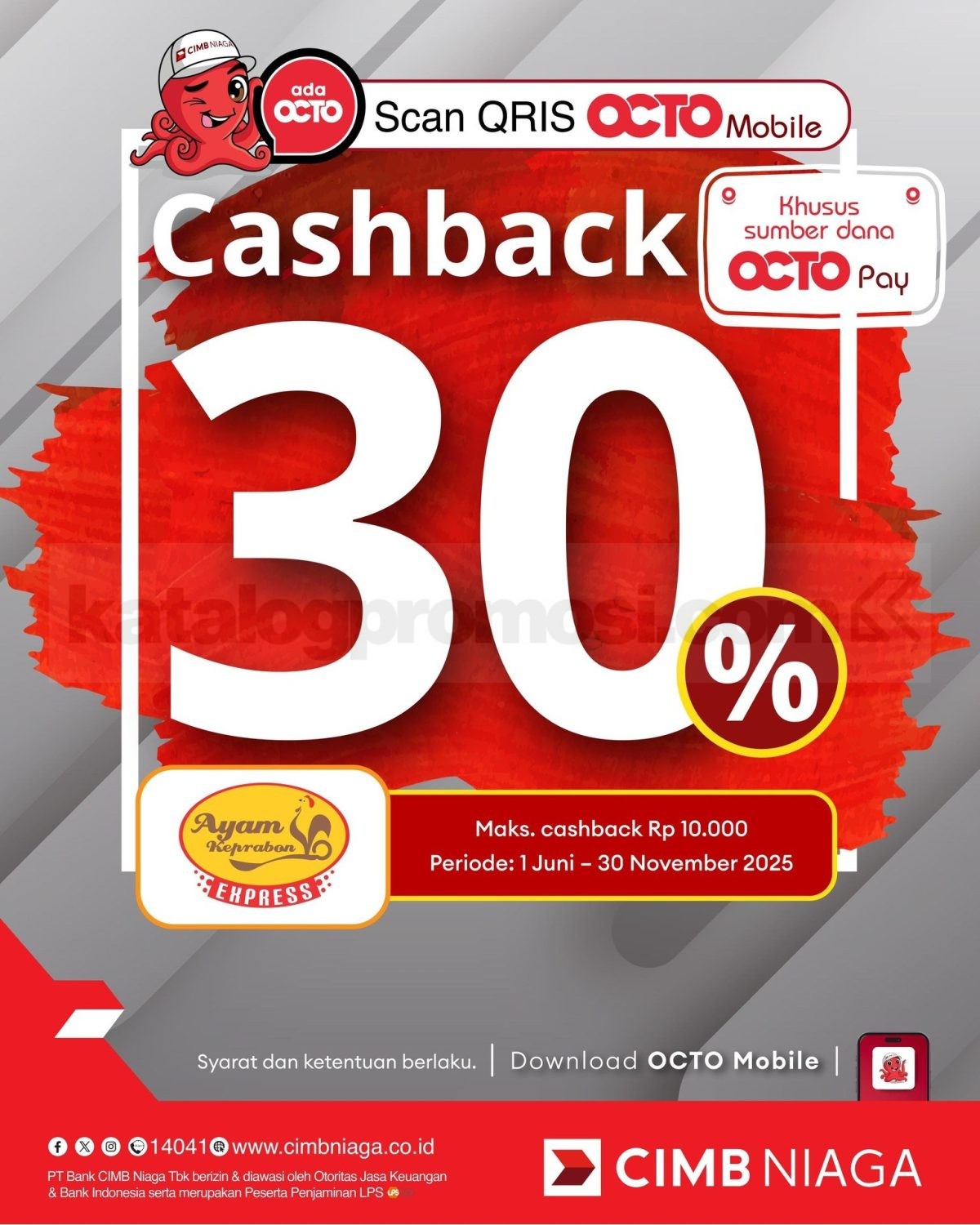 Dan jangan lupa ya, promo ini cuma berlaku di outlet Ayam Keprabon tertentu dan selama periode 1 Juni – 30 November 2025. Jadi pastikan kamu udah install aplikasi OctoMobile dan siap-siap scan QRIS-nya setiap mau jajan! 📱🐔