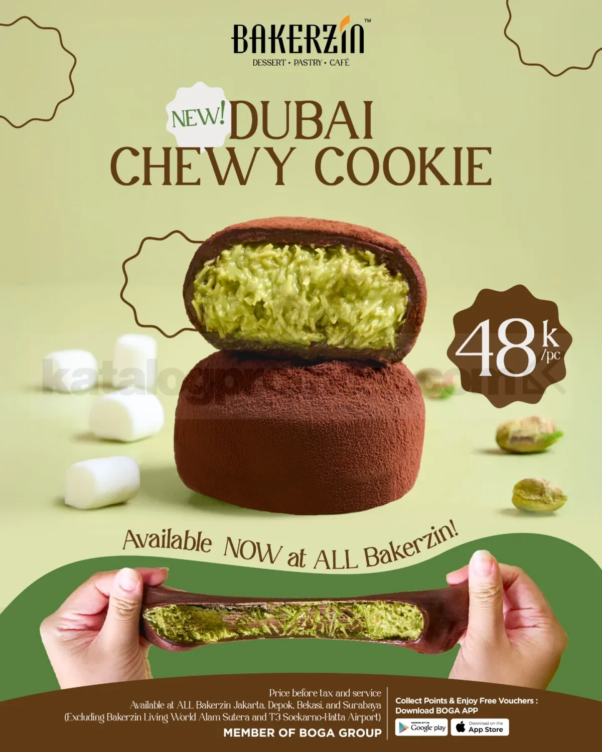 The viral Dubai Chewy Cookie everyone talks about is finally here! Promo Bakerzin Dubai Chewy Cookie jadi kabar seru buat pecinta dessert yang penasaran dengan cookies viral bertekstur unik ini. Dengan harga mulai Rp. 48.000 per pcs, kamu sudah bisa mencicipi sensasi manis yang lagi ramai dibahas. ✨