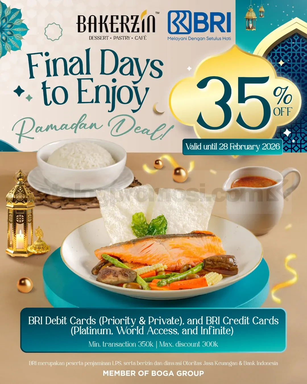 Promo Bakerzin Ramadan Deal Diskon 35% potongan hingga Rp. 300.000 transaksi minimal Rp. 350.000 dengan kartu BRI berlaku hingga 28 Februari 2026