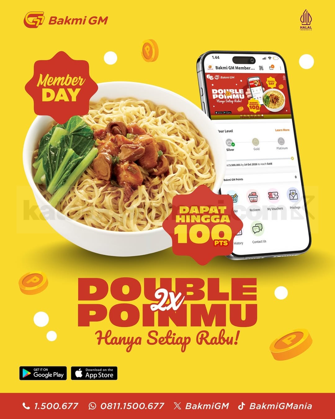 Nikmati Promo Bakmi GM Member Day Double Poin Hingga 100 Poin setiap hari Rabu untuk makan bareng sambil kumpulin poin lebih cepat.