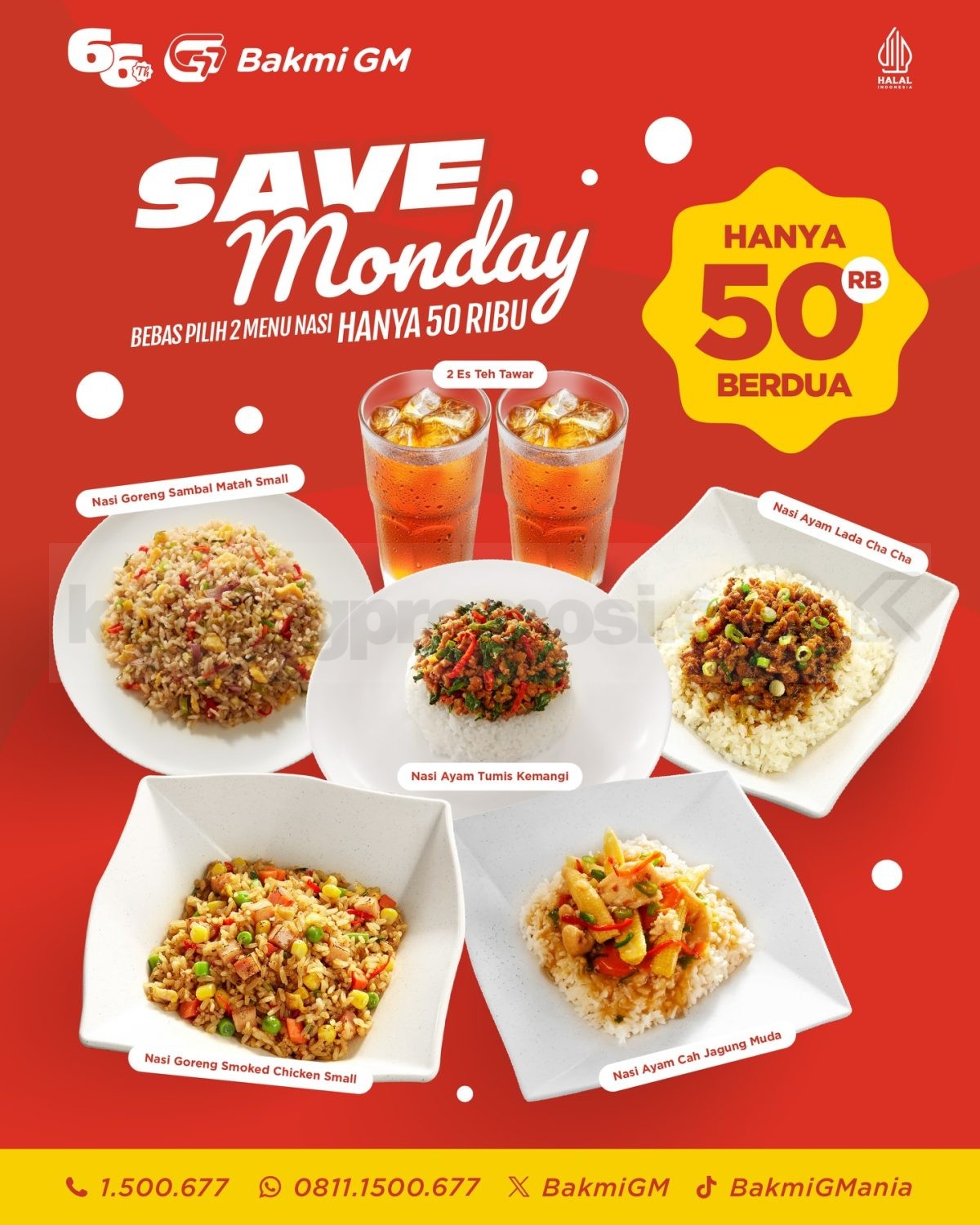 Langsung sikat Promo Bakmi GM 25rb 2 Menu Nasi sebelum berakhir! Biar hari Senin kamu tetap fun, tetap kenyang, dan tetap hemat. Order sekarang lewat link atau hotline yang tersedia!