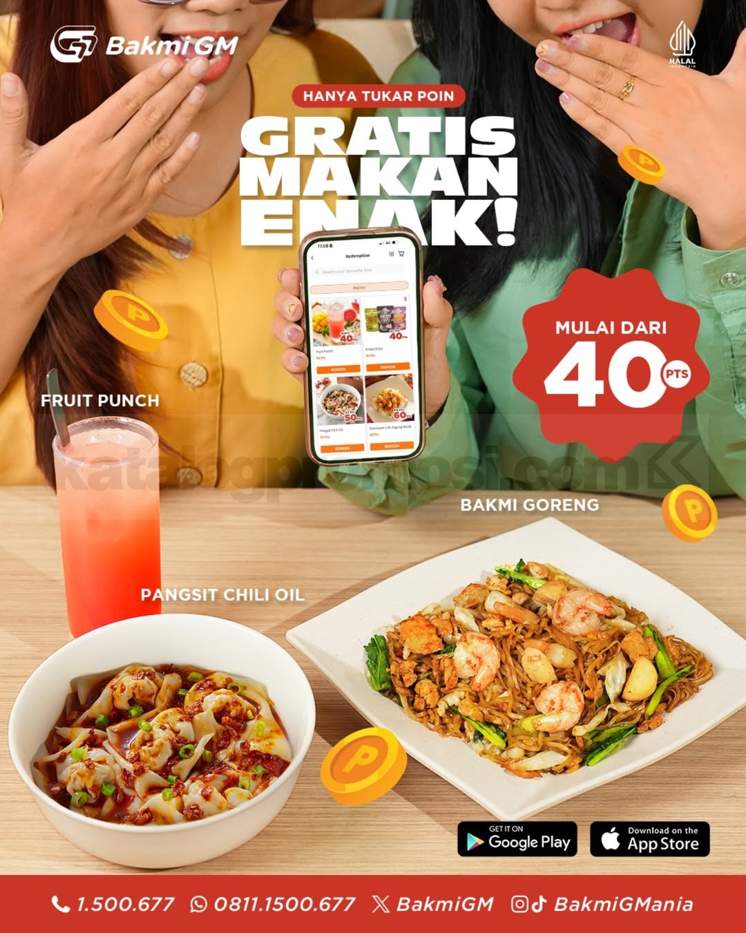 Promo Bakmi GM Tukar Poin Gratis Menu Favorit mulai 40pts tukarkan poin membership lewat aplikasi berlaku mulai tanggal 26 Februari 2026 – tanpa batas waktu