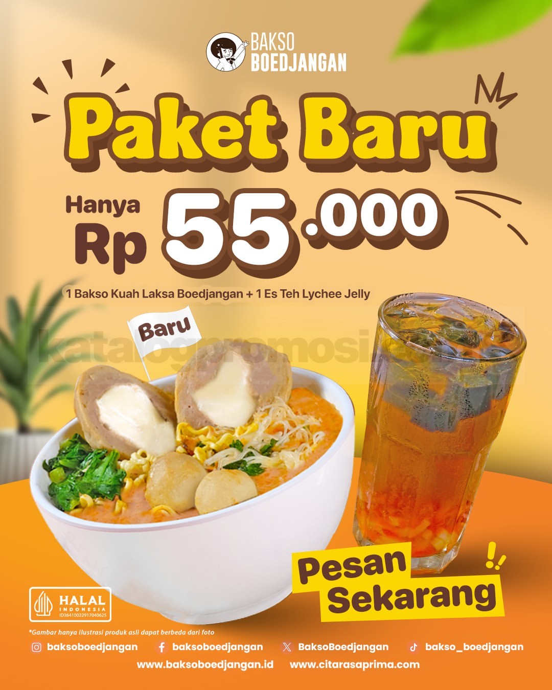 Promo Bakso Boedjangan Paket Baru Rp55.000 eksklusif di AEON Mall Tanjung Barat! Nikmati bakso kuah laksa + Es Teh Lychee Jelly segar.