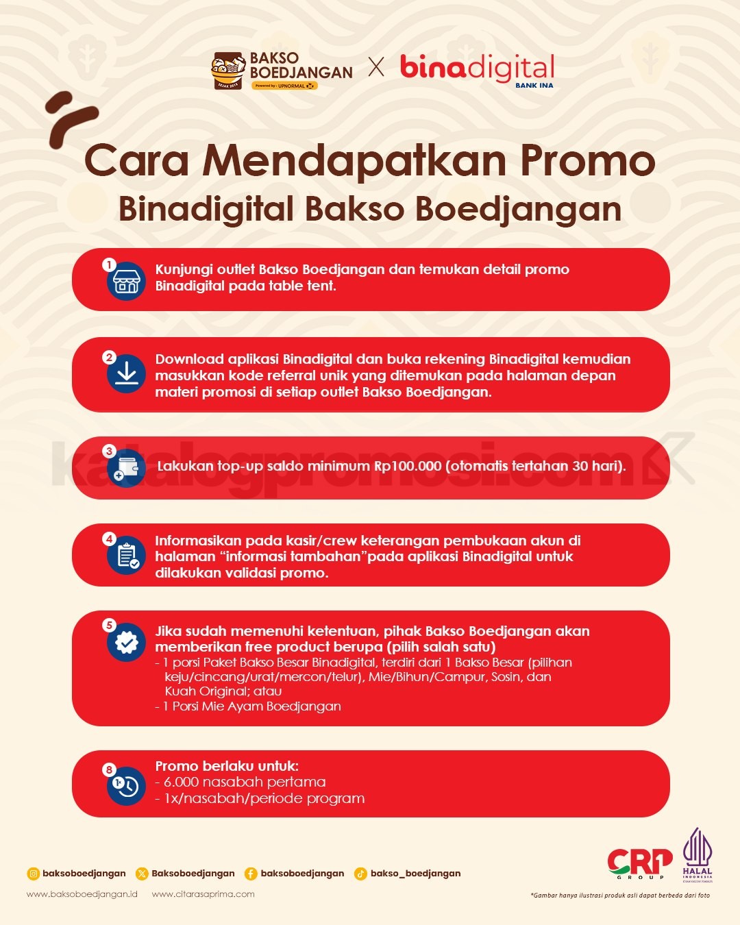 Menariknya lagi, Promo Bakso Boedjangan Binadigital Gratis Ngebakso ini hanya berlaku untuk 6.000 nasabah pertama, jadi semakin cepat kamu ikut, semakin besar peluang menikmati makan gratis bareng orang tersayang 💛