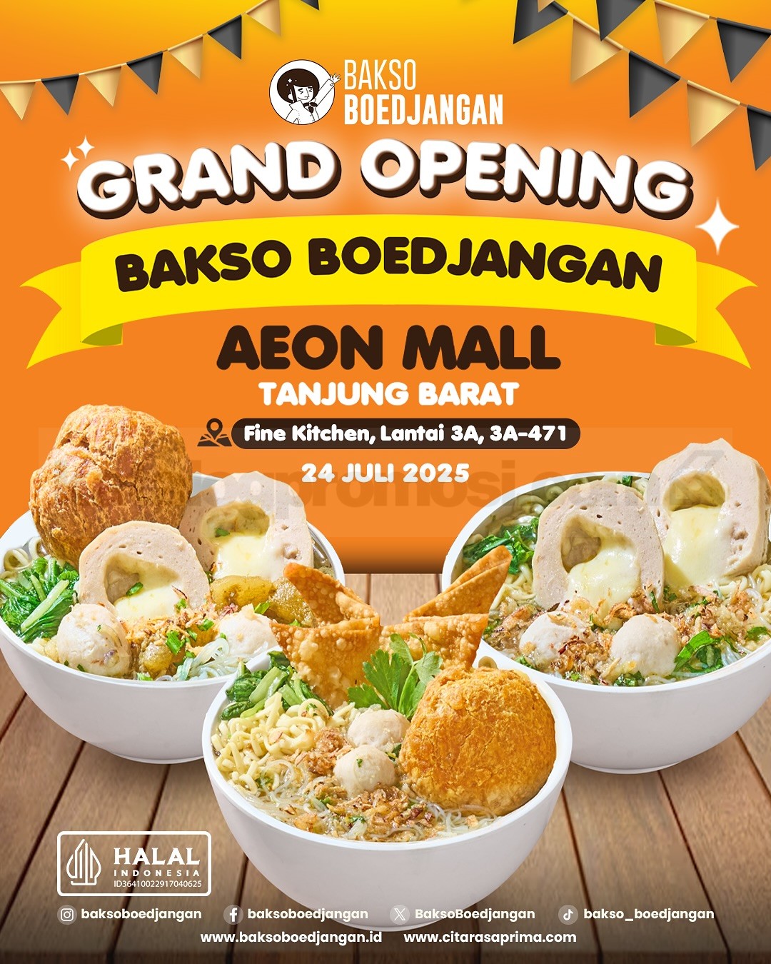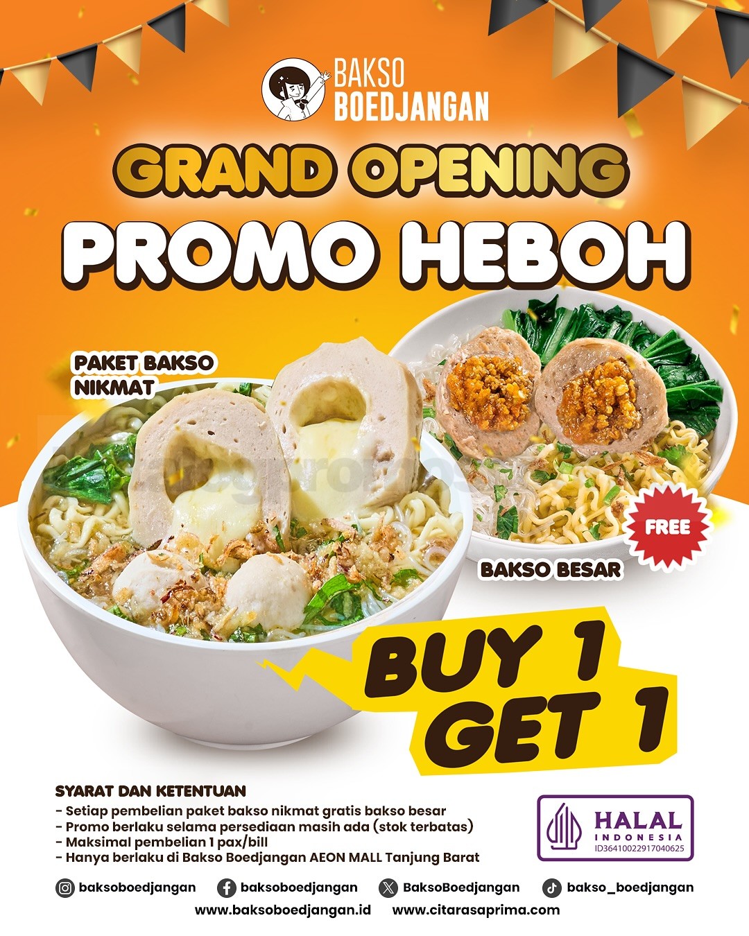 Promo hanya berlaku di Bakso Boedjangan AEON Mall Tanjung Barat.