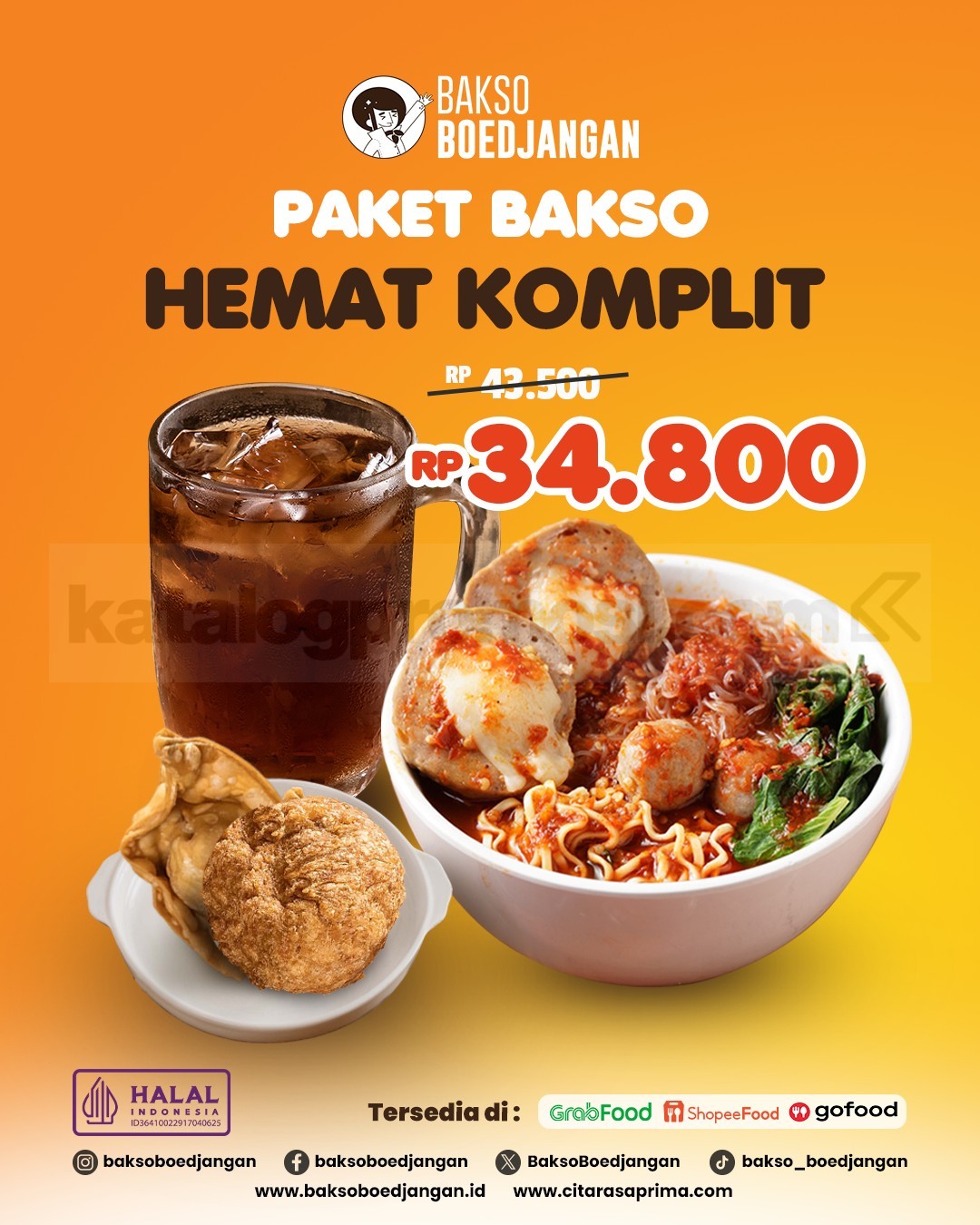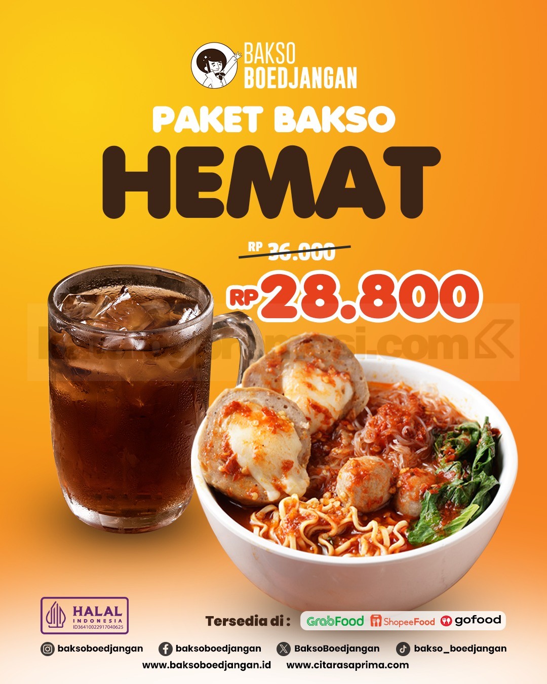 Lagi cari Promo Bakso Boedjangan Paket Bakso Hemat yang bikin perut kenyang dan dompet aman? Langsung aja pesen sekarang juga via aplikasi favorit kamu. Jangan tunggu gajian dulu—makan enak bisa kapan aja! 😍🔥
