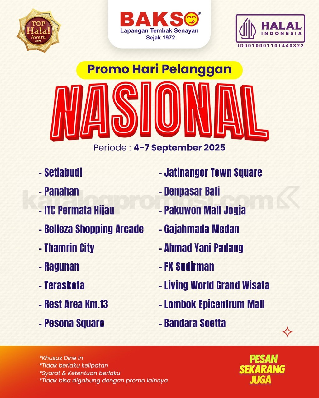 - Berlaku di outlet tertentu sesuai daftar cabang.