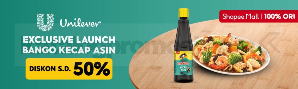 Promo ini merupakan penawaran diskon hingga 50% untuk pembelian Bango Kecap Asin melalui aplikasi Shopee pada fitur Shopee Mall.