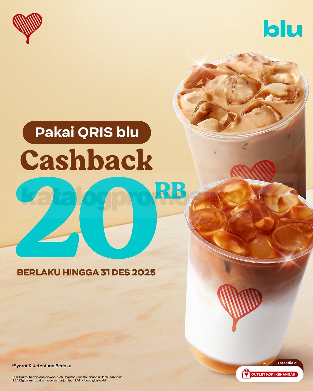 Promo hanya berlaku di outlet Kopi Kenangan yang menerima pembayaran menggunakan bank terkait.