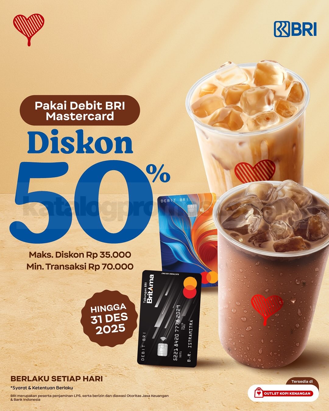 Selain itu, ada juga diskon gede 50% pakai Debit BRI Mastercard tiap hari, maksimal diskon Rp35.000 dengan minimal transaksi Rp70.000.