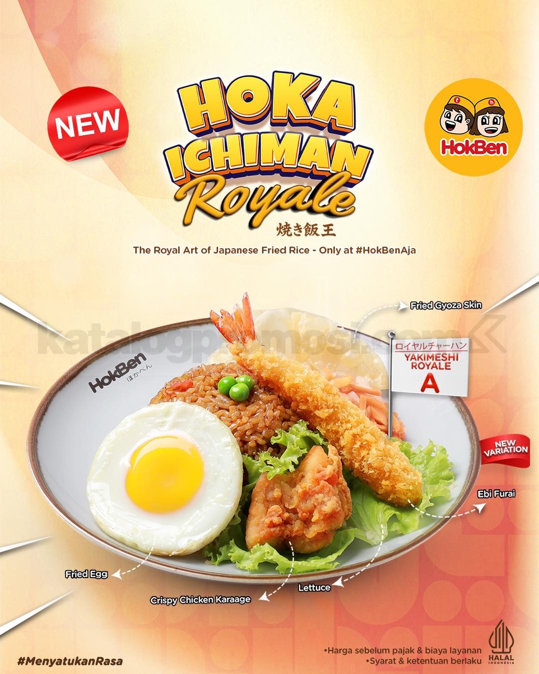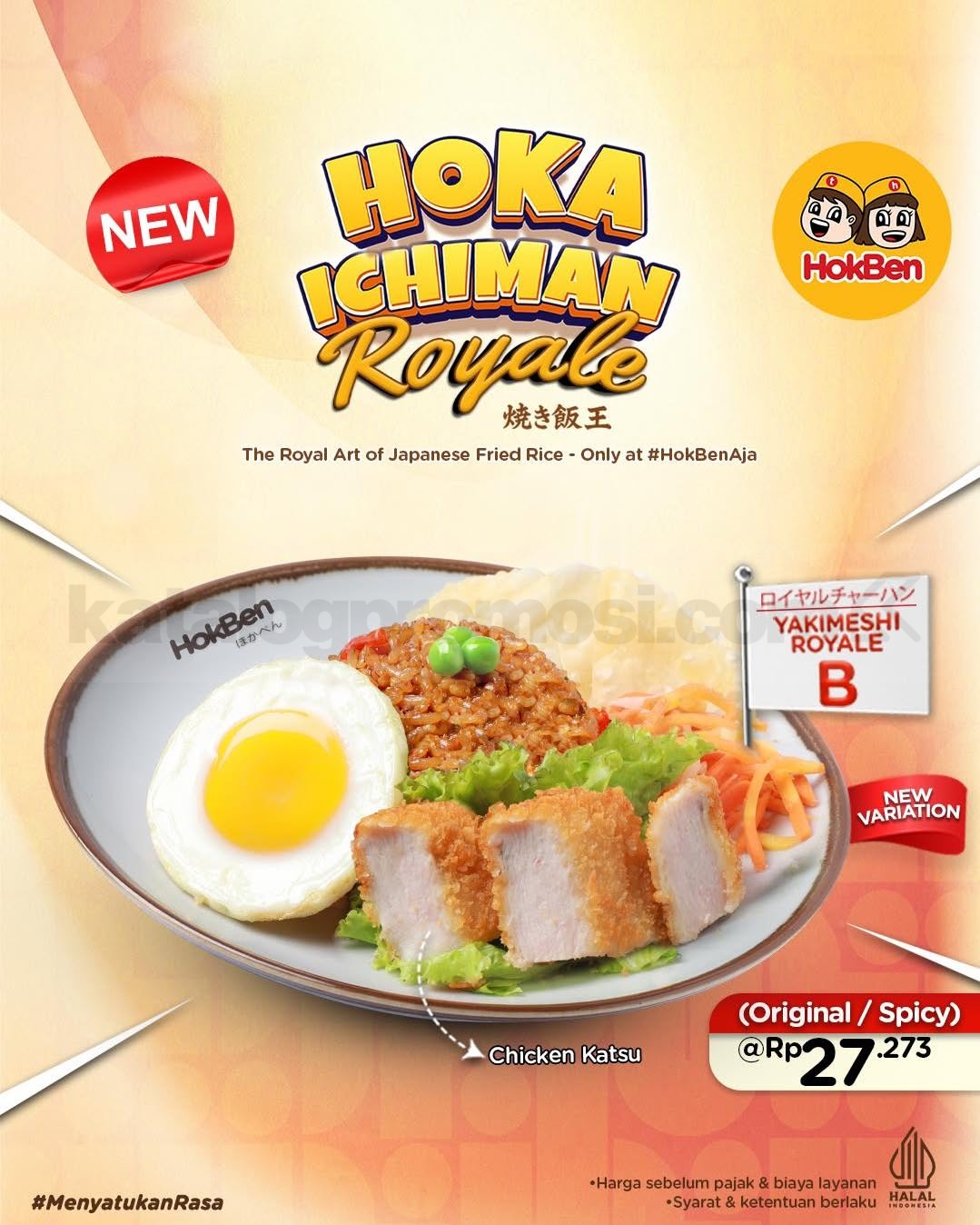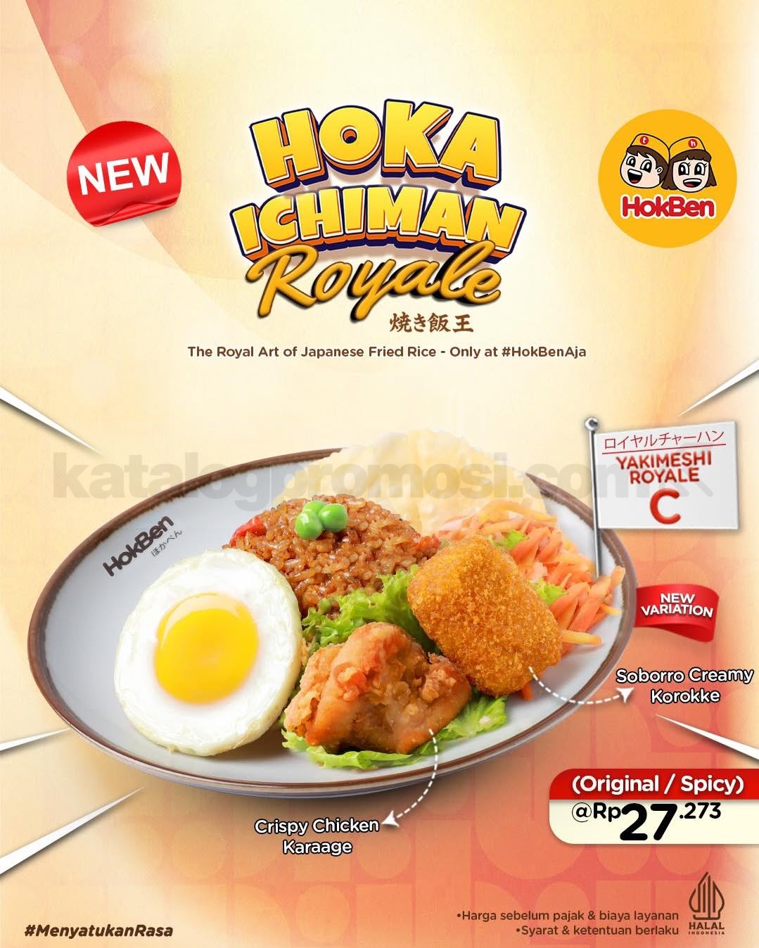 Promo HokBen Hoka Ichiman Royale Rp. 31.819 menawarkan paket nasi Yakimeshi Royale lengkap minuman, berlaku hingga 31 Desember 2025 di seluruh outlet.