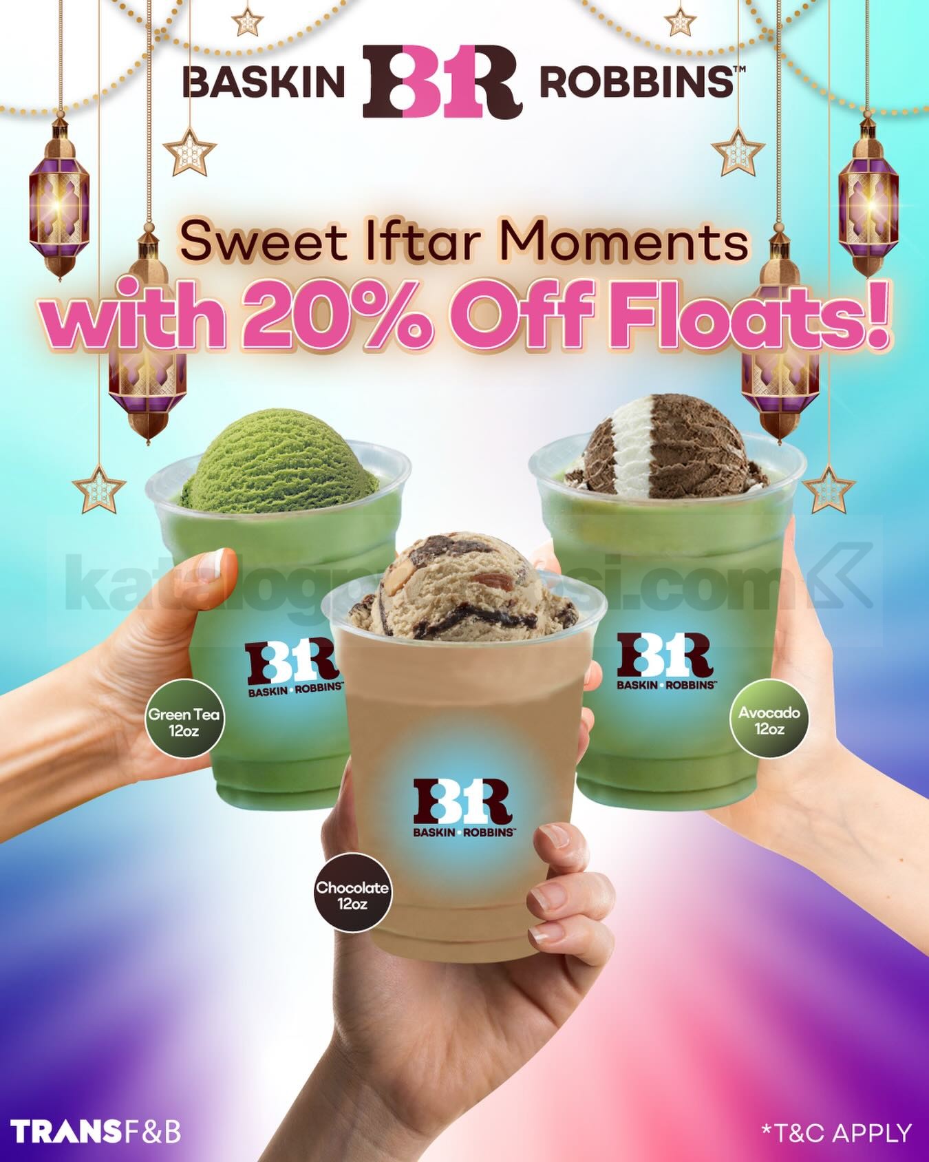 Nikmati Promo Baskin Robbins Float Ramadan Diskon 20 Persen untuk melengkapi momen berbuka dengan minuman segar yang creamy dan menyenangkan.