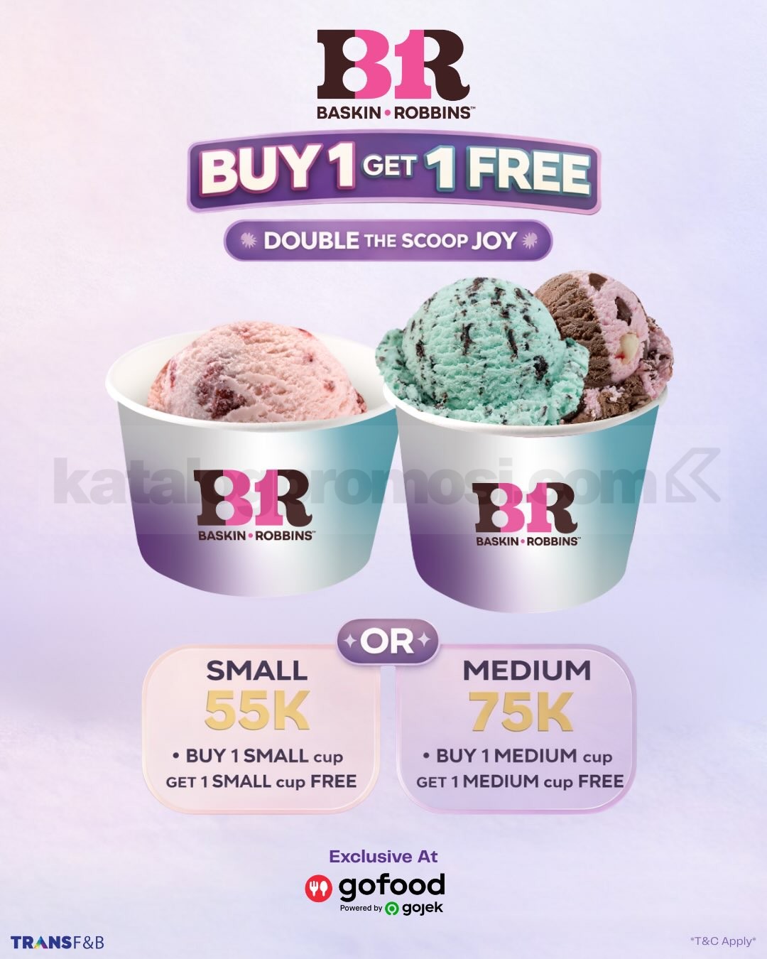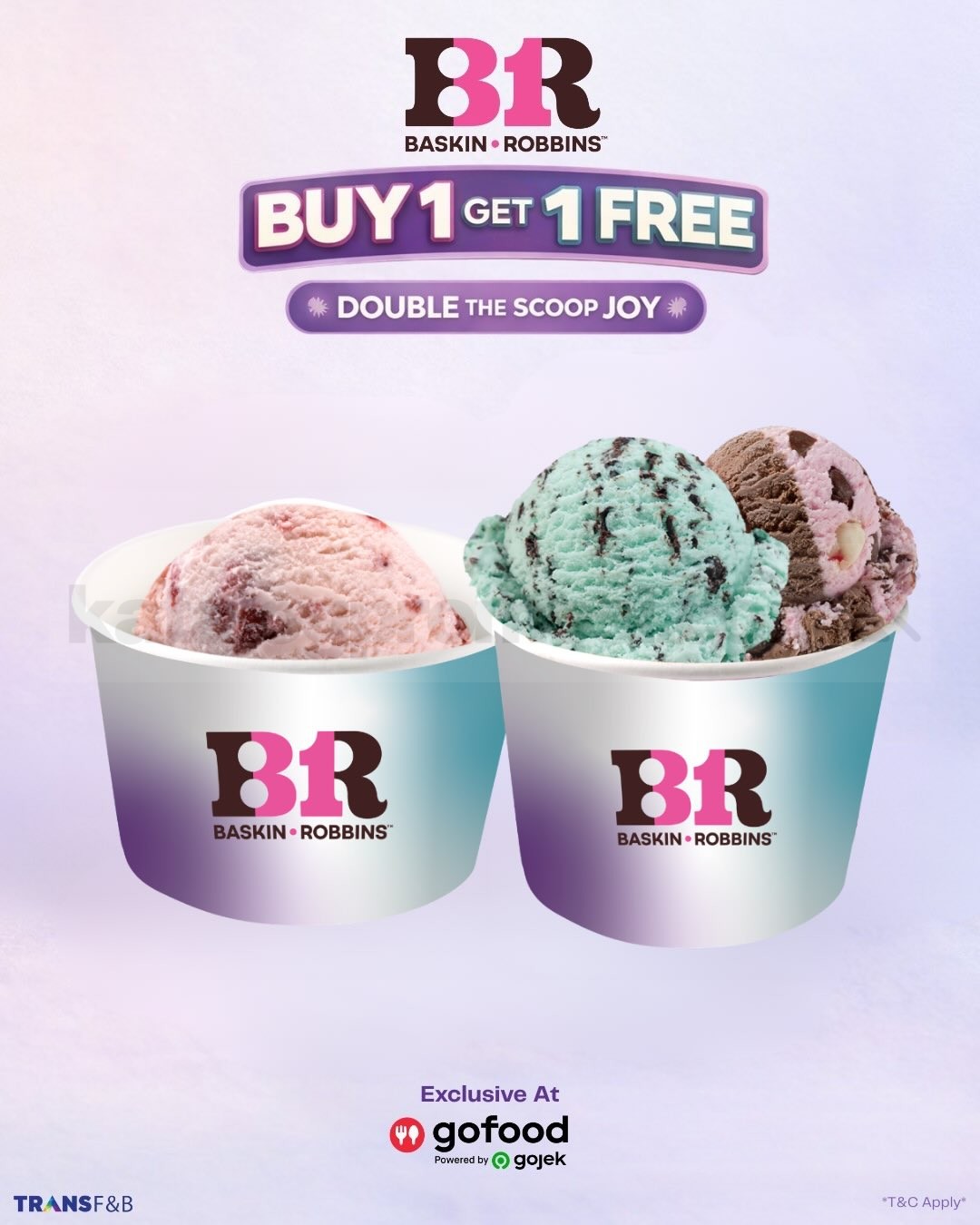 • Promo tersedia melalui aplikasi GoFood pada outlet Baskin Robbins yang berpartisipasi
