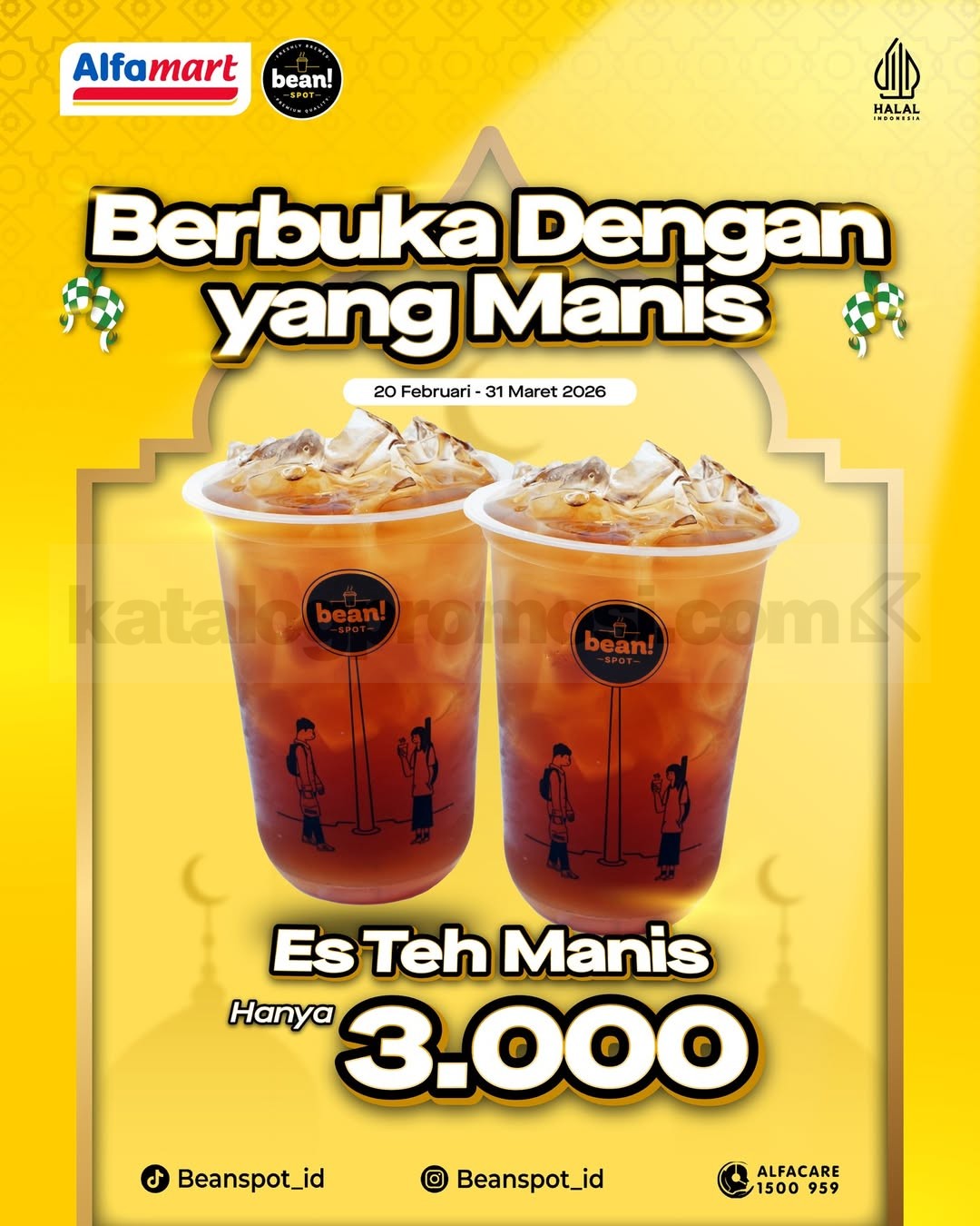Promo Beanspot Es Teh Manis Segar Rp. 3.000 minuman segar untuk buka puasa dengan pembelian langsung berlaku mulai tanggal 20 Februari 2026 – 31 Maret 2026