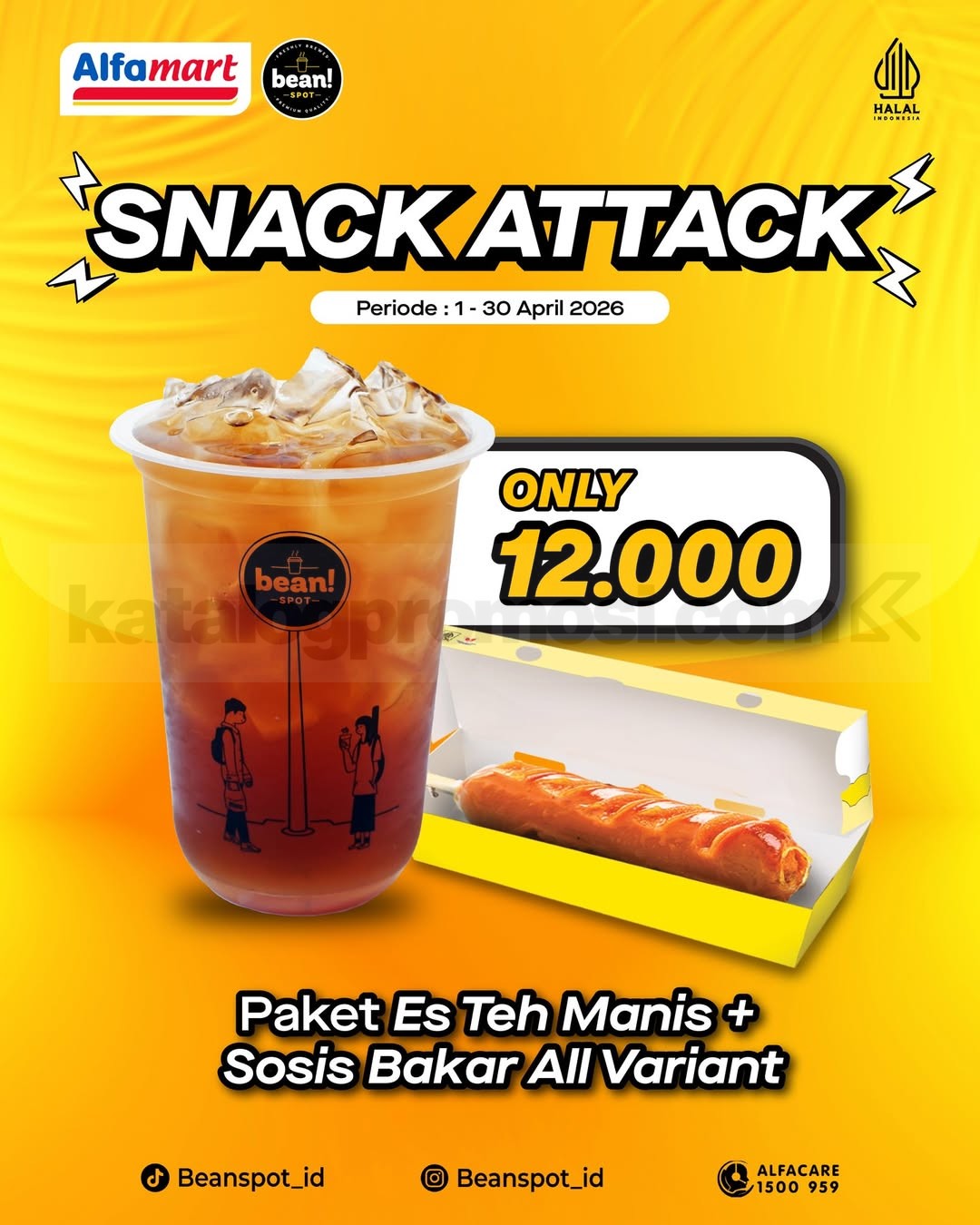 Promo Beanspot Paket Snack Attack Rp. 12.000Â nikmati es teh manis dan sosis bakar berlaku mulai tanggal 1 April 2026 – 30 April 2026