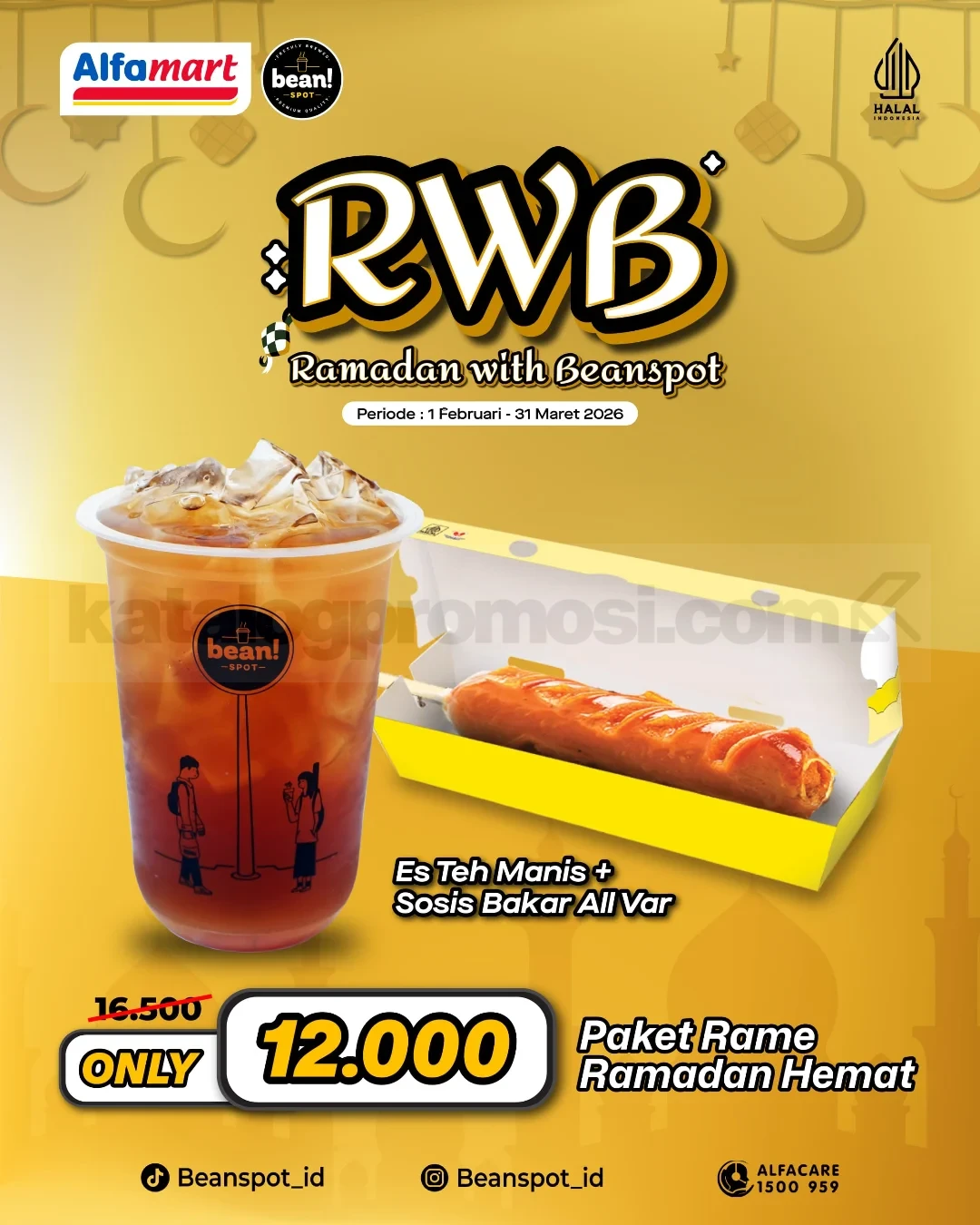 Promo Beanspot Ramadhan Paket Es Teh + Sosis Rp. 12.000 paket hemat sahur berbuka berlaku 1 Februari 2026 – 31 Maret 2026 di seluruh outlet