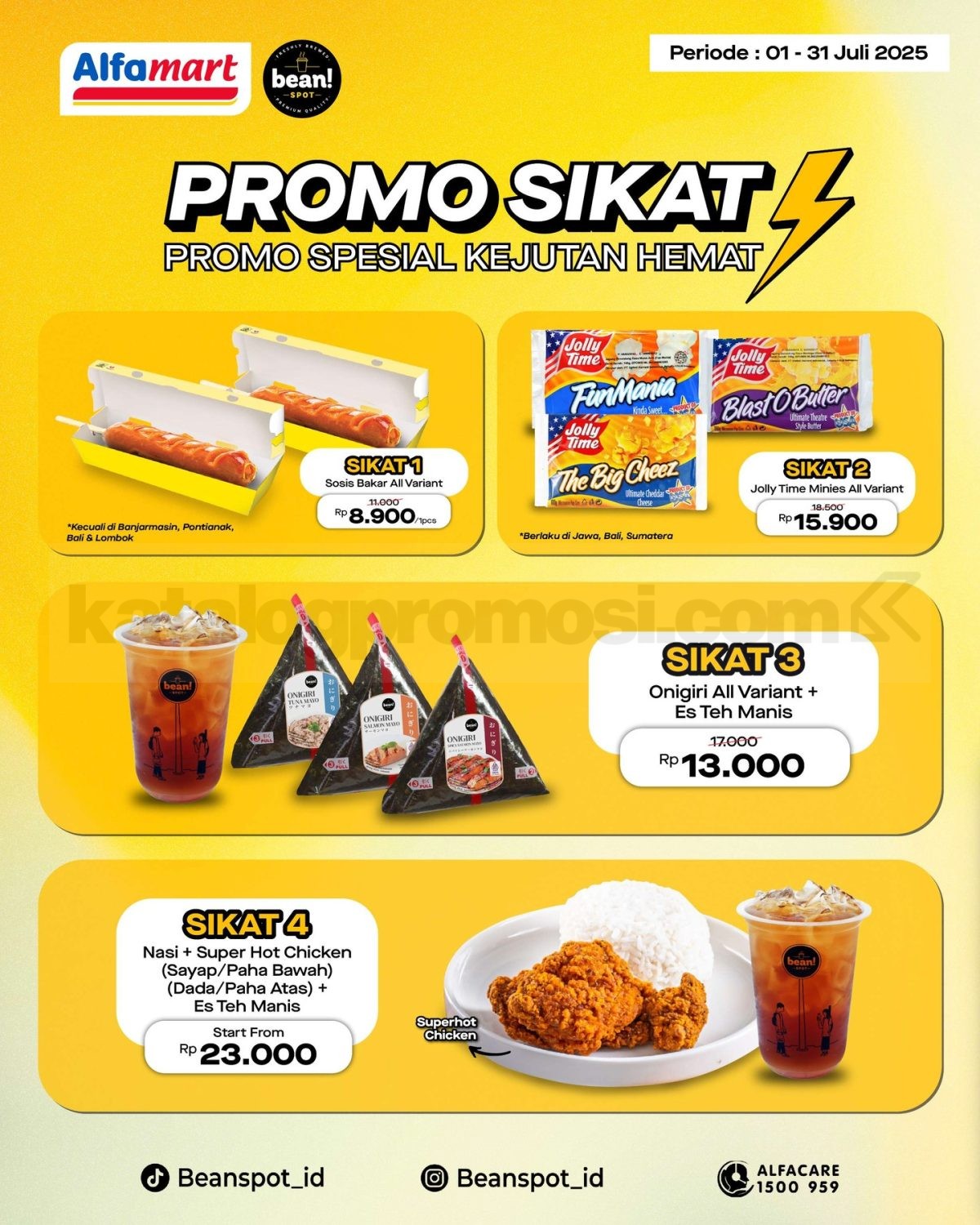 Promo Bean! Spot Sikat Edisi November 2025 ini bisa kamu nikmati di banyak outlet Alfamart yang sudah punya Bean! Spot corner. Langsung datang dan nikmati berbagai menu lezatnya selama periode promo masih berlaku!