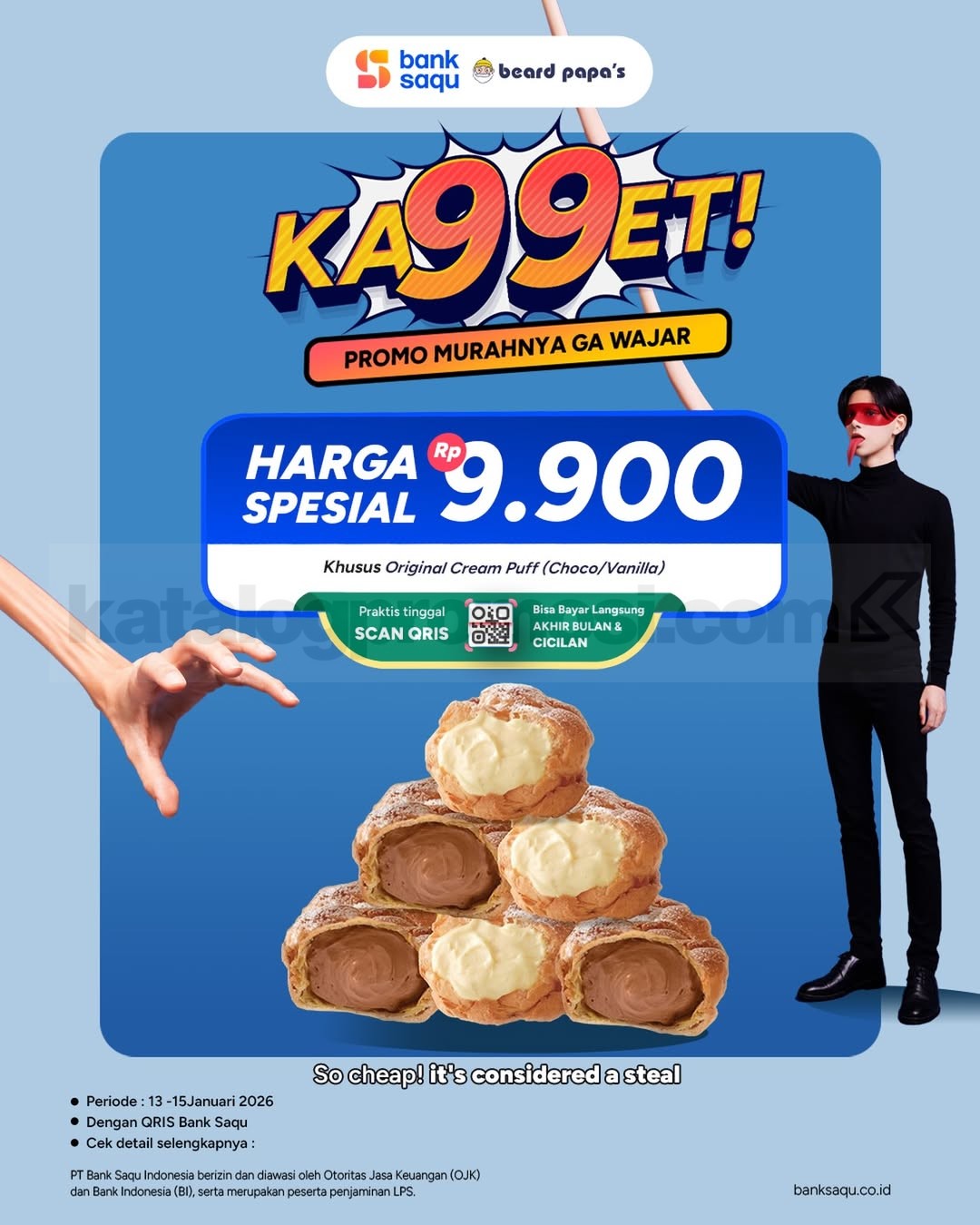Promo Beard Papa’s Bank Saqu KA99ET Cream Puff Rp.9.900 via QRIS Bank Saqu berlaku mulai tanggal 13 Januari 2026 – 15 Januari 2026 di seluruh outlet kecuali bandara.