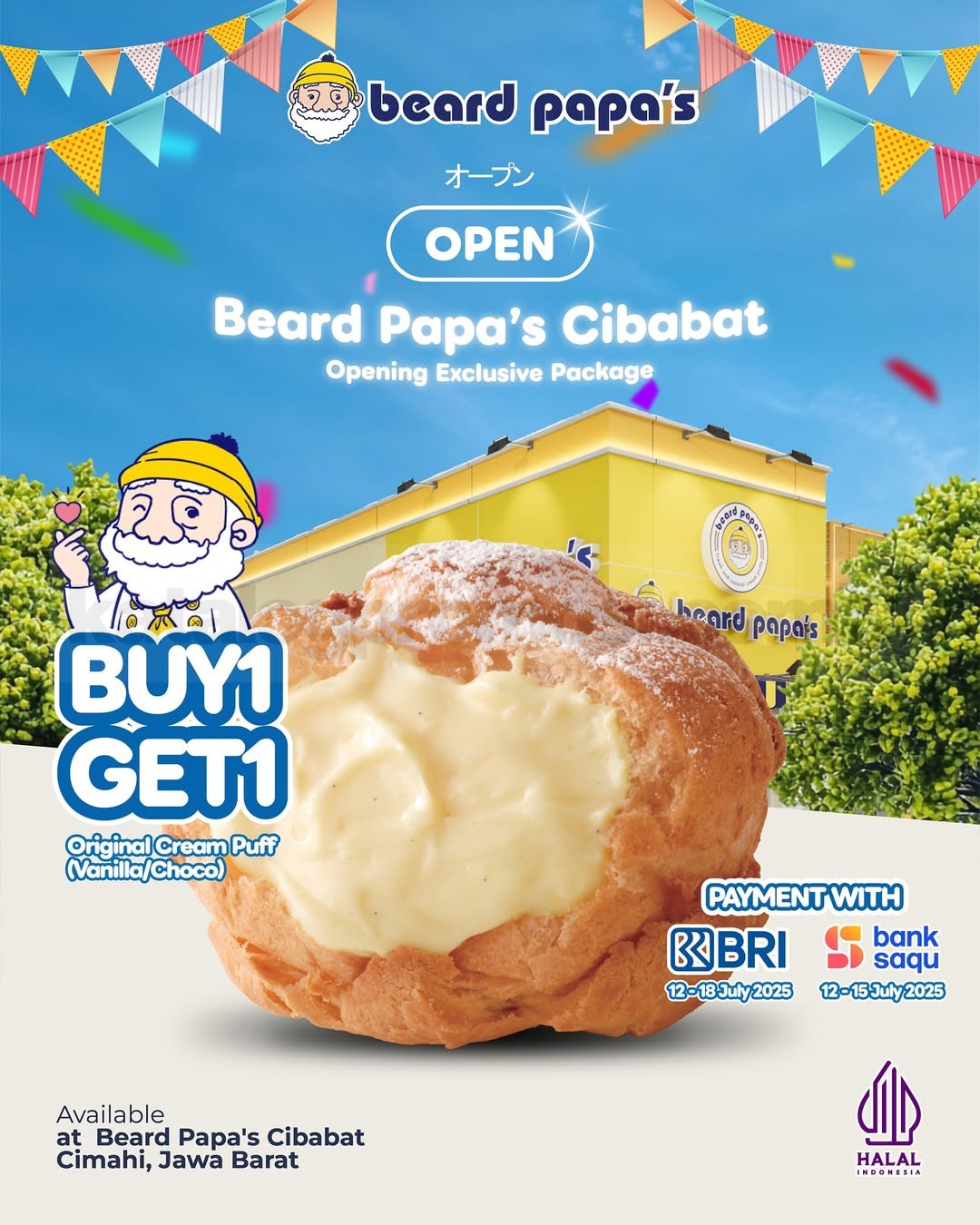 Rayakan ulang tahun ke-130 Bank BRI dengan momen manis lewat Promo Beard Papa’s HUT BRI Cream Puff Rp. 13.000 🎉. Selama periode promo, kamu bisa menikmati Beard Papa’s Original Cream Puff varian Vanilla atau Chocolate dengan harga spesial yang sayang untuk dilewatkan.