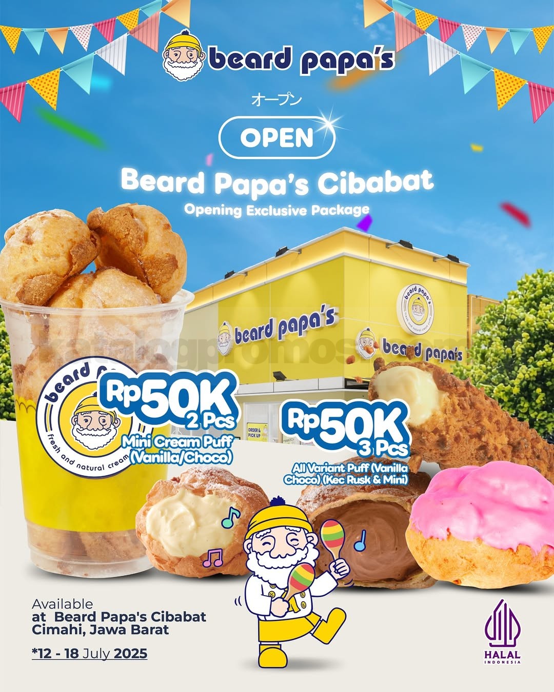 Promo Beard Papa’s HUT BRI Cream Puff Rp. 13.000 berlaku selama beberapa hari dan bisa dinikmati di hampir seluruh outlet Beard Papa’s di Indonesia.
